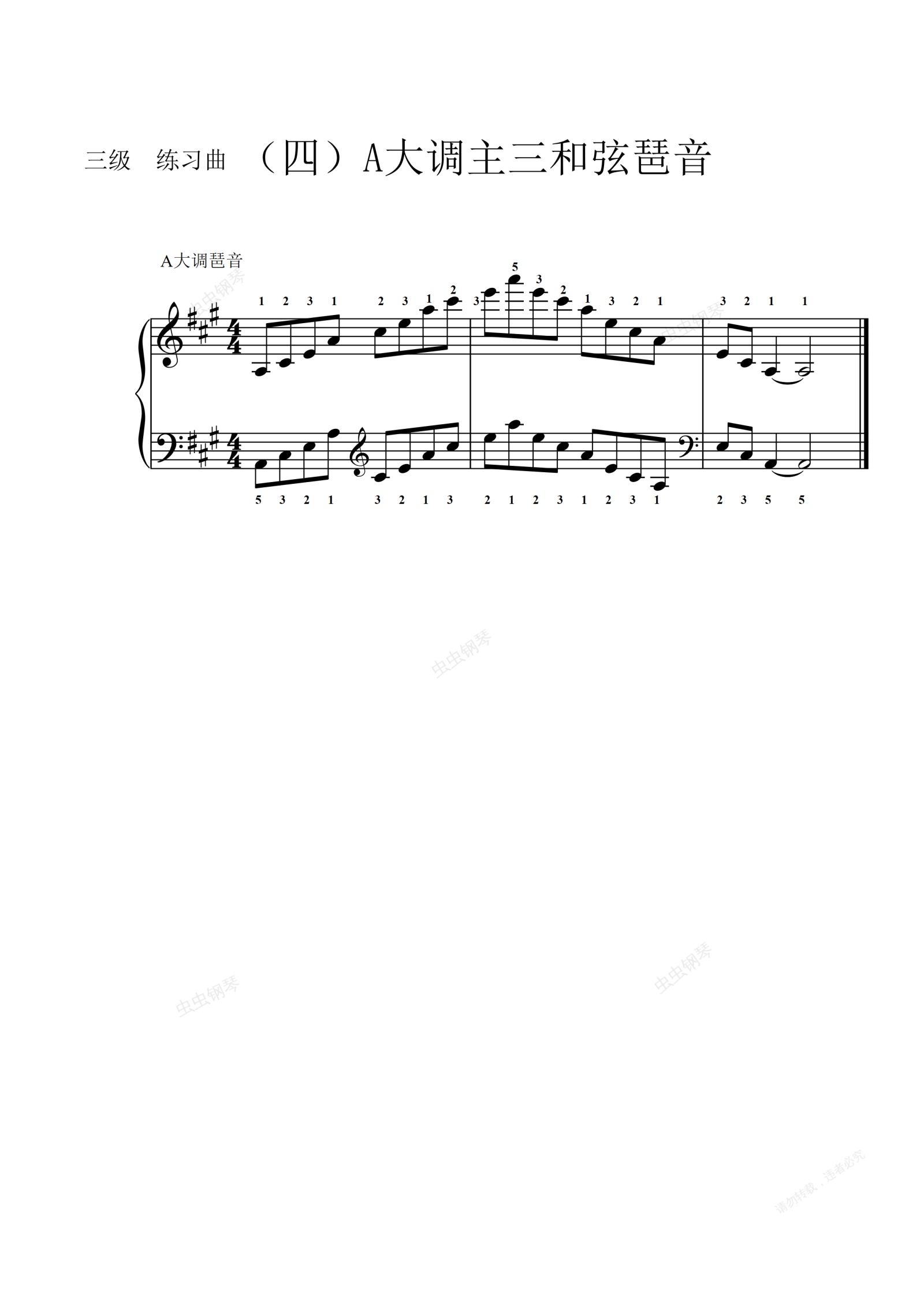 您的位置: 首頁 > 鋼琴譜庫 > 3級-15-A大調琶音鋼琴譜-吳迎
