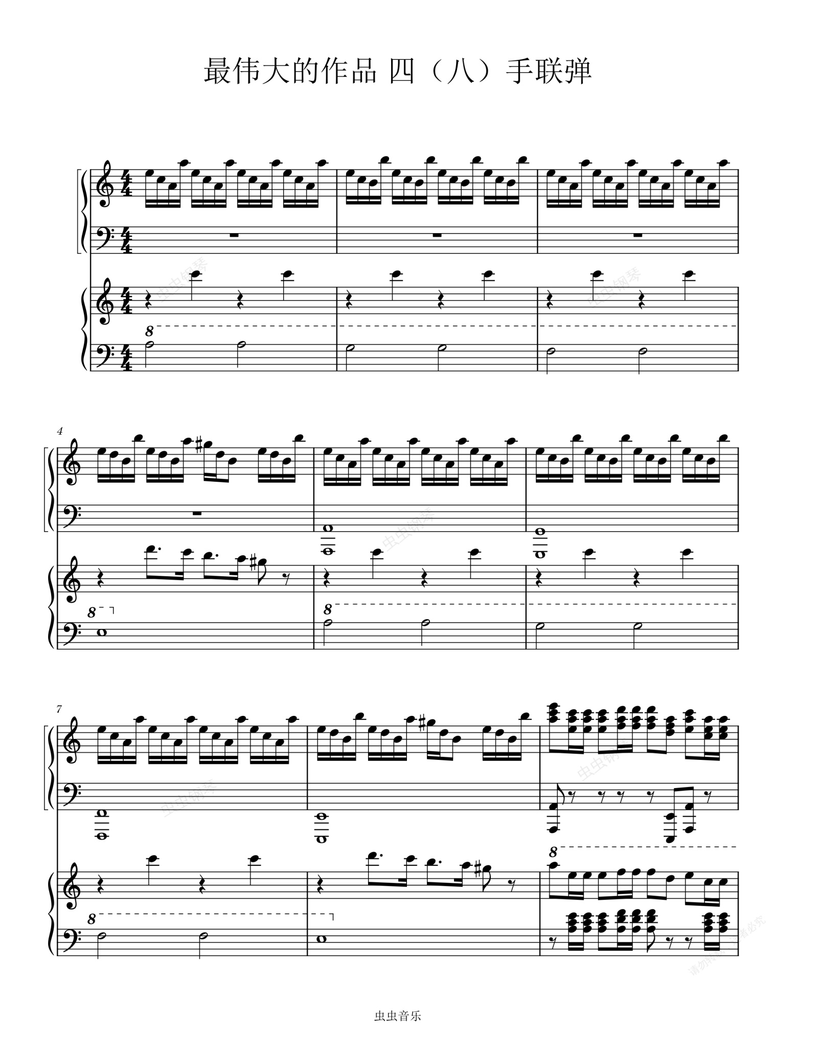 最偉大的作品抒情慢版四(八)手聯(lián)彈 初學(xué)者拜厄水平