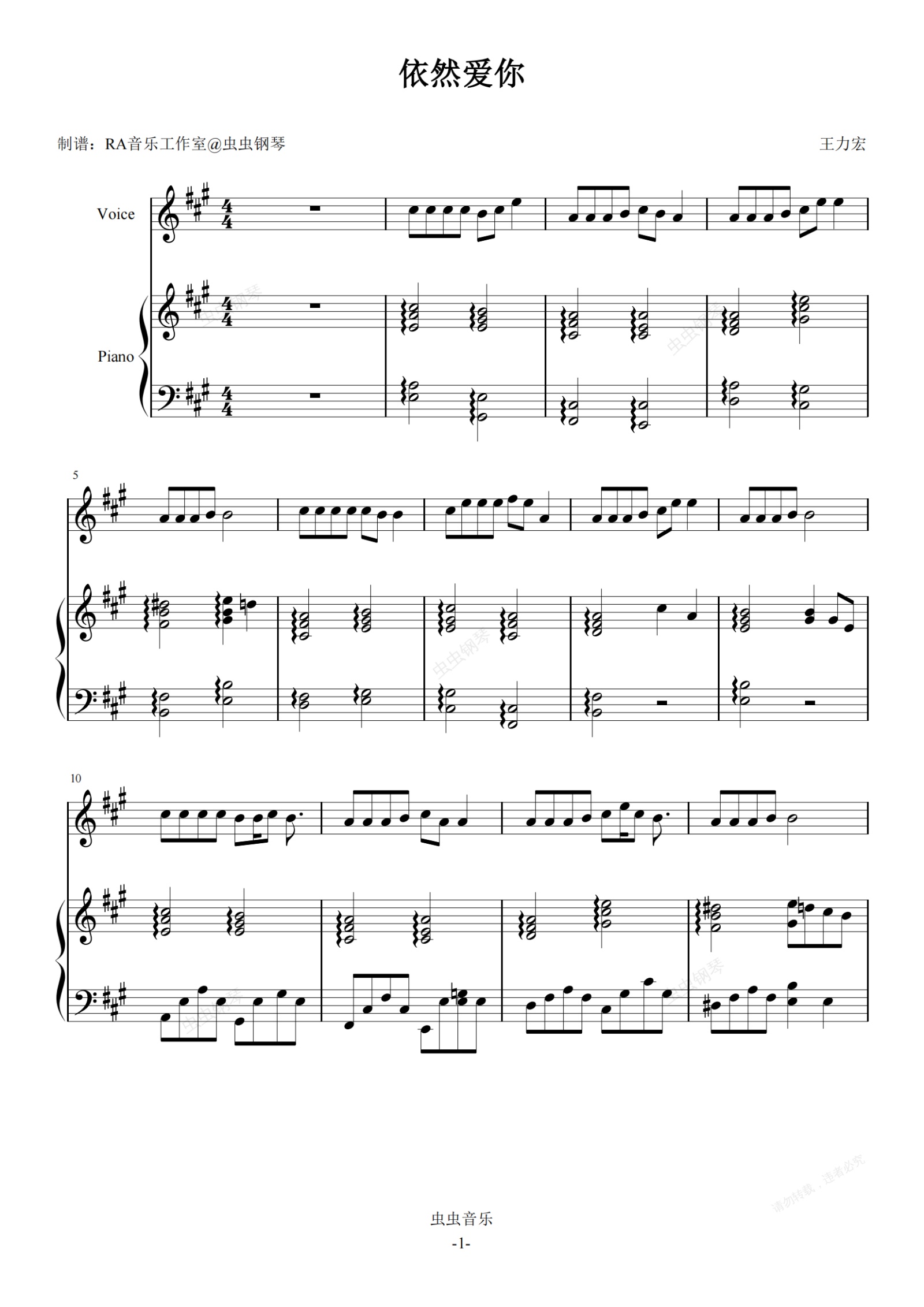 鋼琴譜:《依然愛你》-王力宏-簡化鋼琴伴奏版