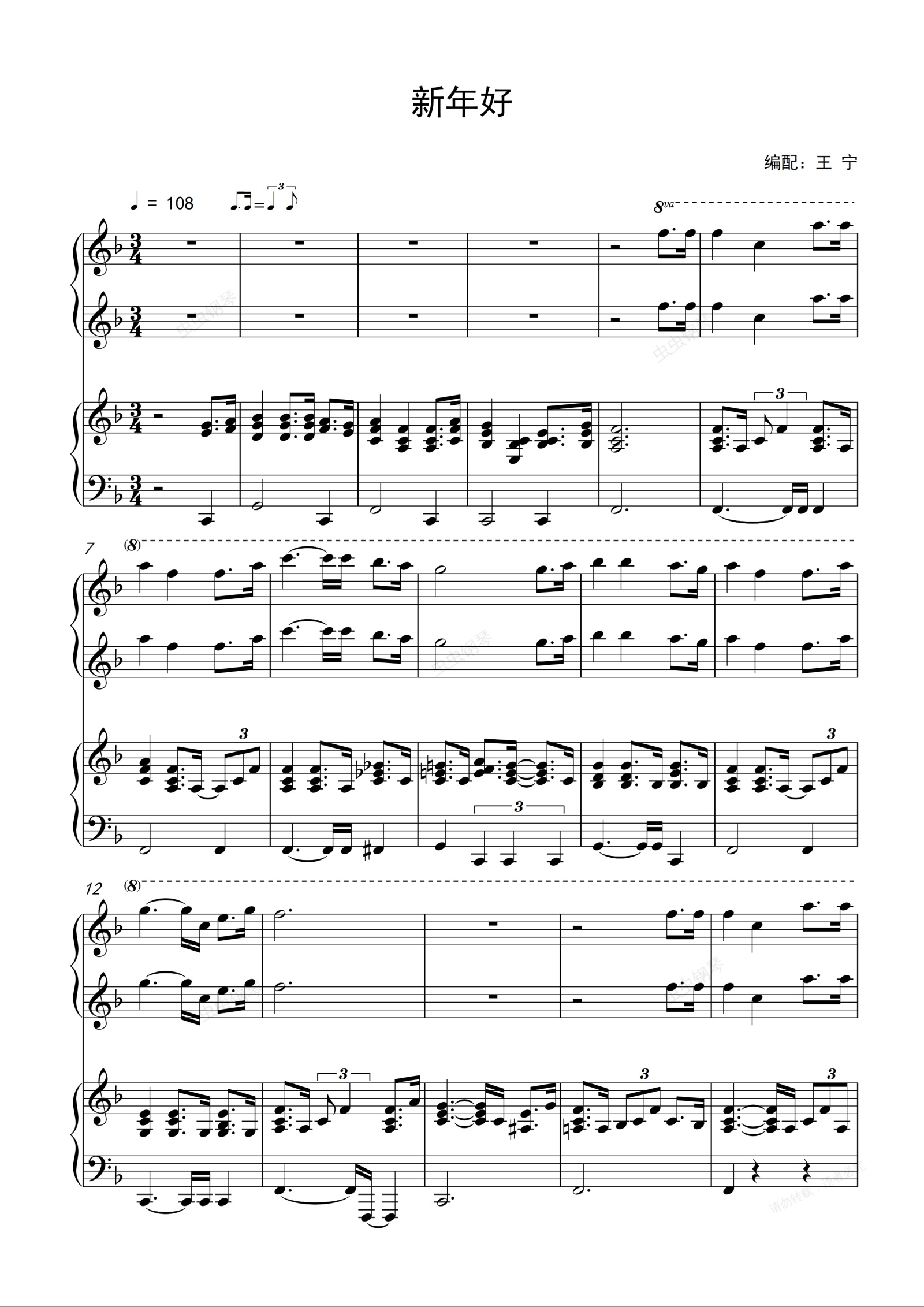您的位置: 首頁 > 鋼琴譜庫 > 新年好 四手聯彈鋼琴譜-王寧