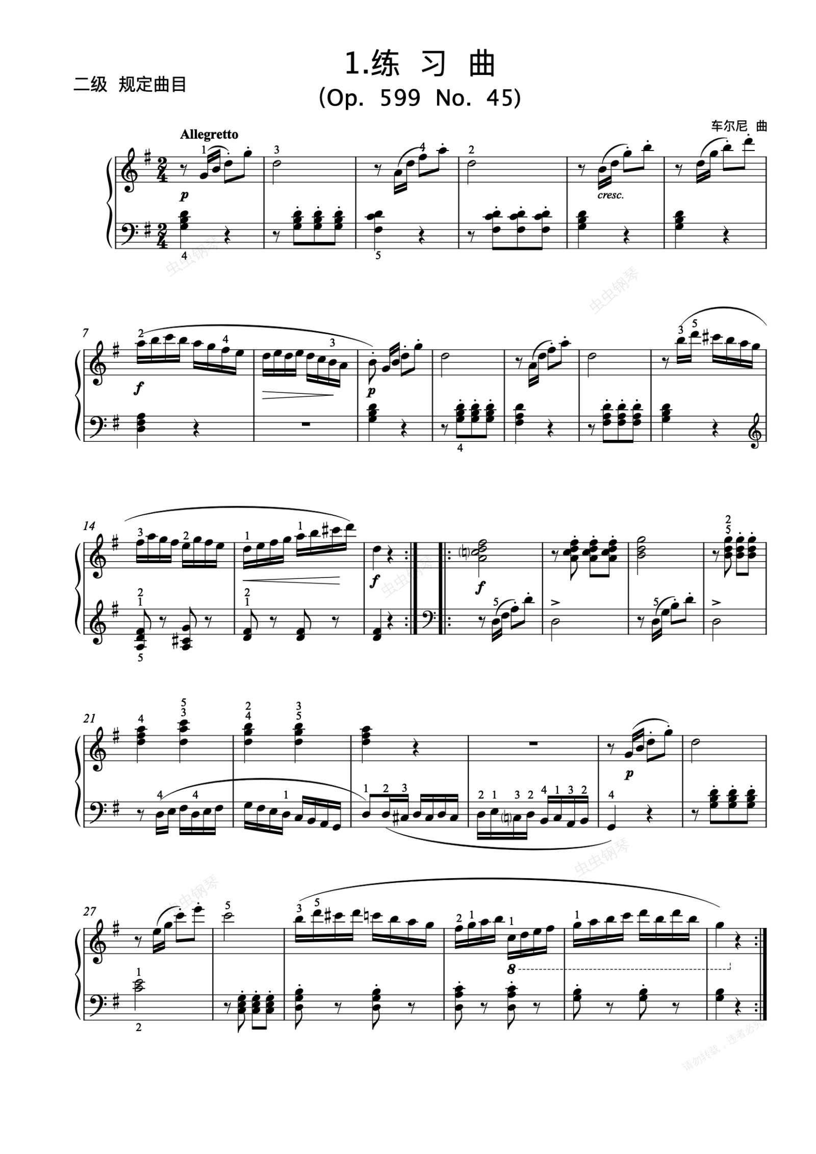 鋼琴譜:2級(jí)-A-1. 練習(xí)曲(Op.599 No.45)