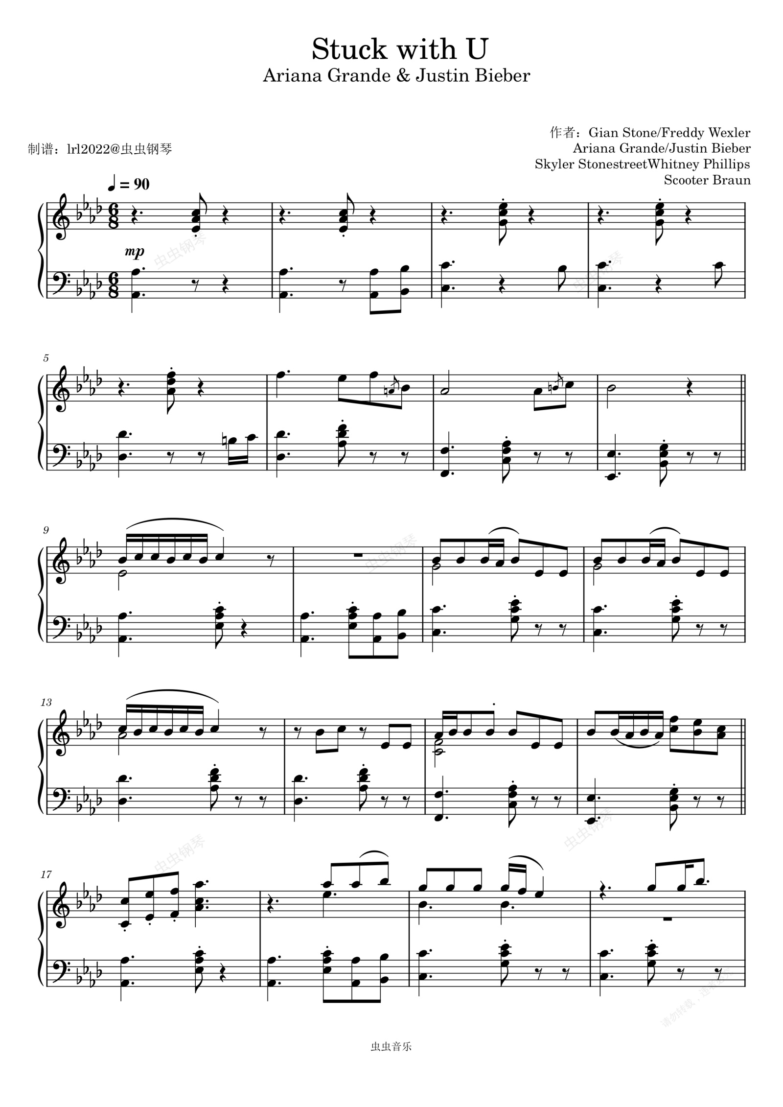 鋼琴譜:Stuck with U - Ariana Grande & Justin Bieber - 鋼琴獨(dú)奏