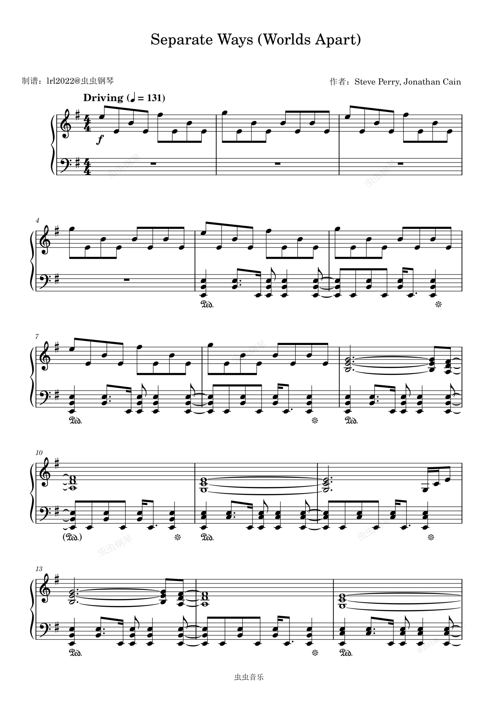 鋼琴譜:Separate Ways (Worlds Apart) – 鋼琴獨奏 - Journey