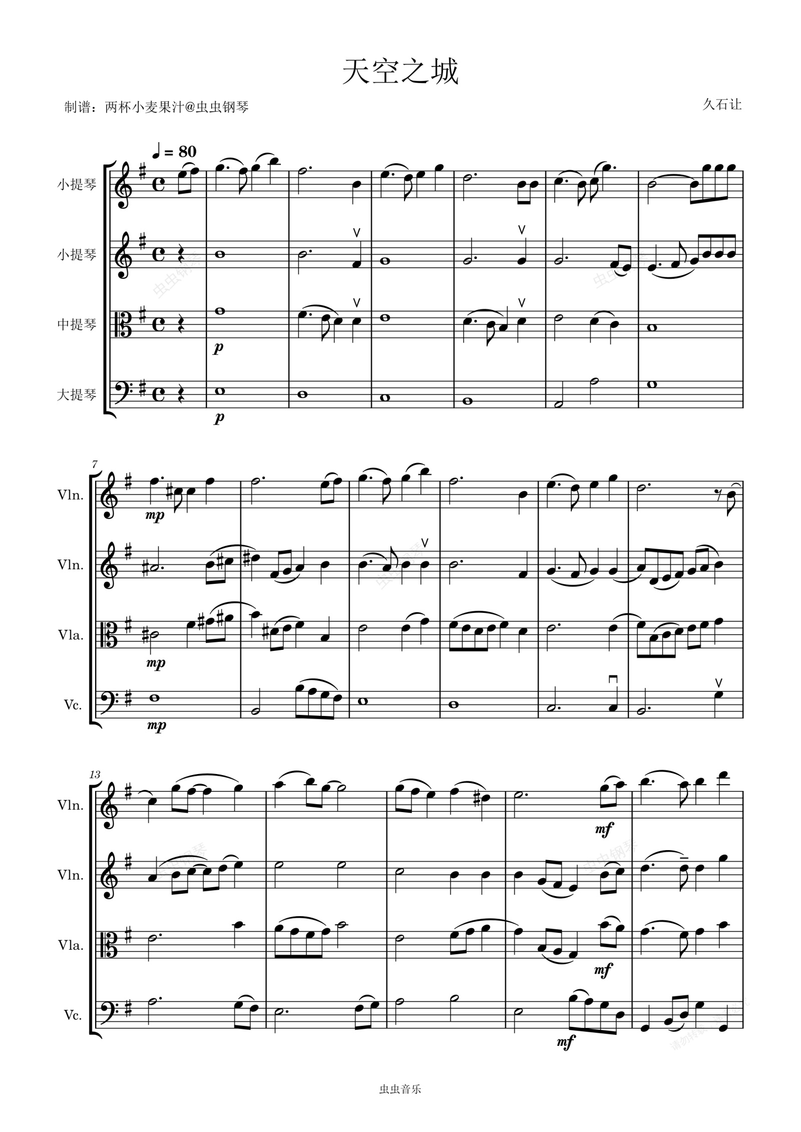 鋼琴譜:天空之城-電影《天空之城》弦樂四重奏
