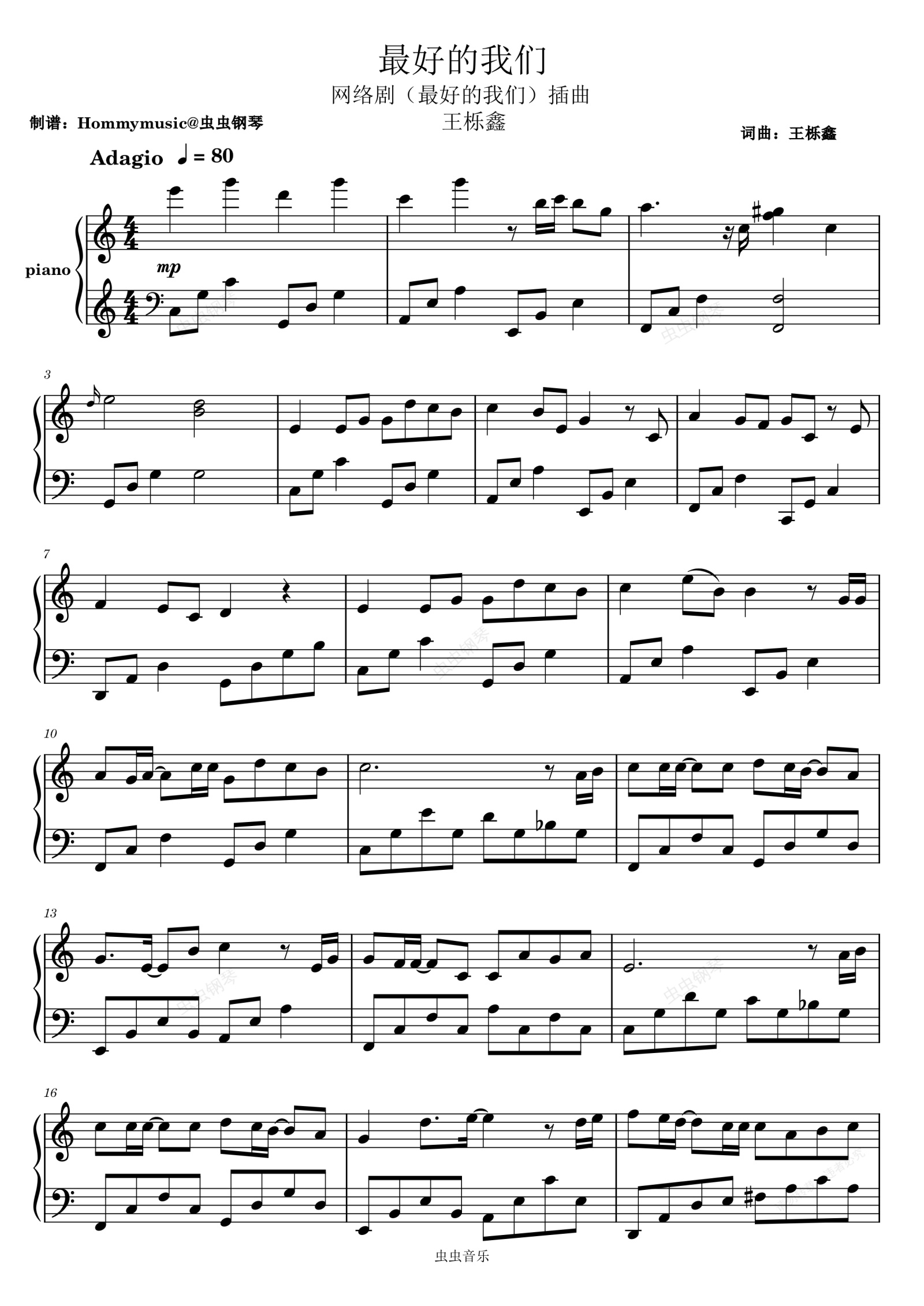 鋼琴譜:最好的我們—王櫟鑫 C調(diào)版簡(jiǎn)單 太好聽了!