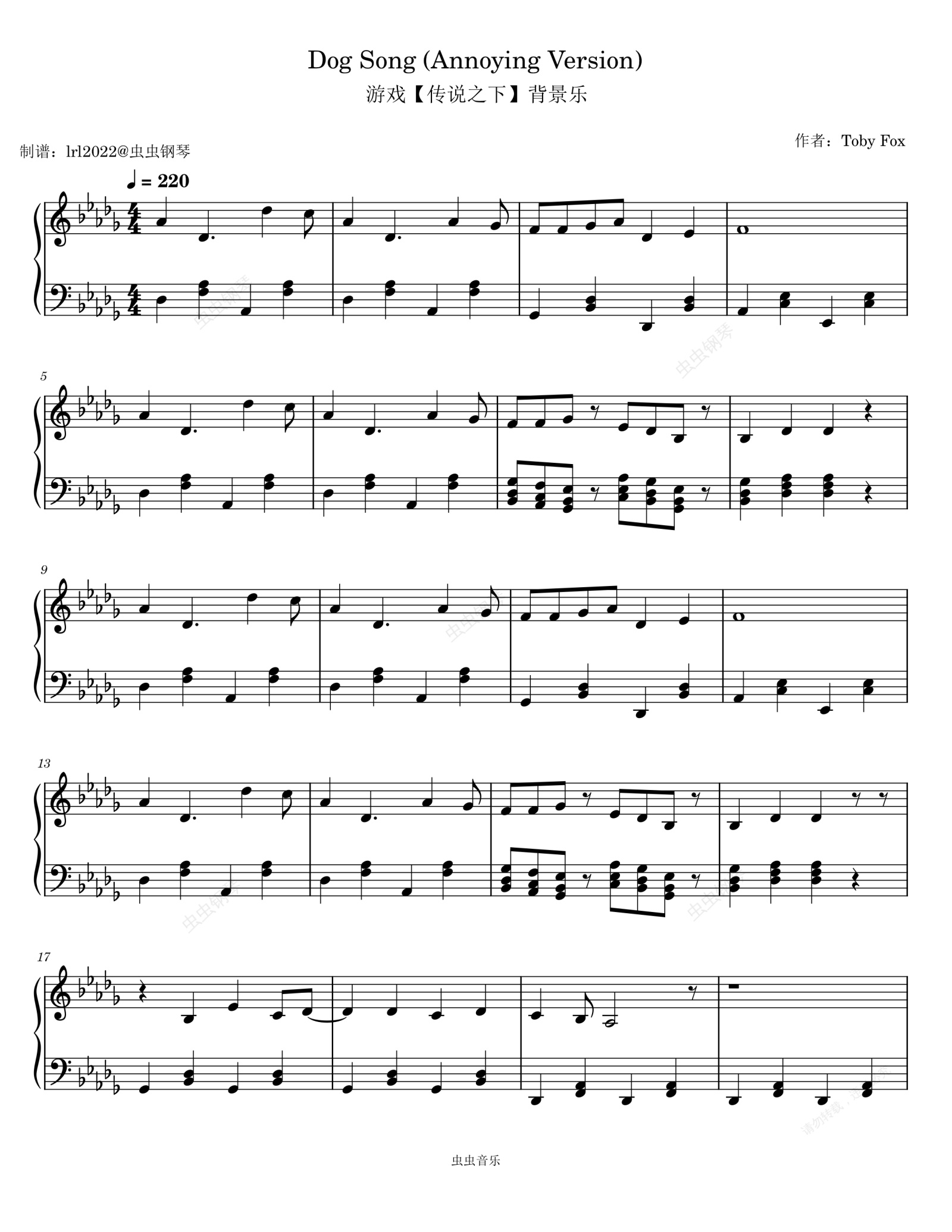 鋼琴譜:DogSong (Annoying Version) - Undertale - 游戲【傳說之下】背景樂 - 鋼琴獨奏