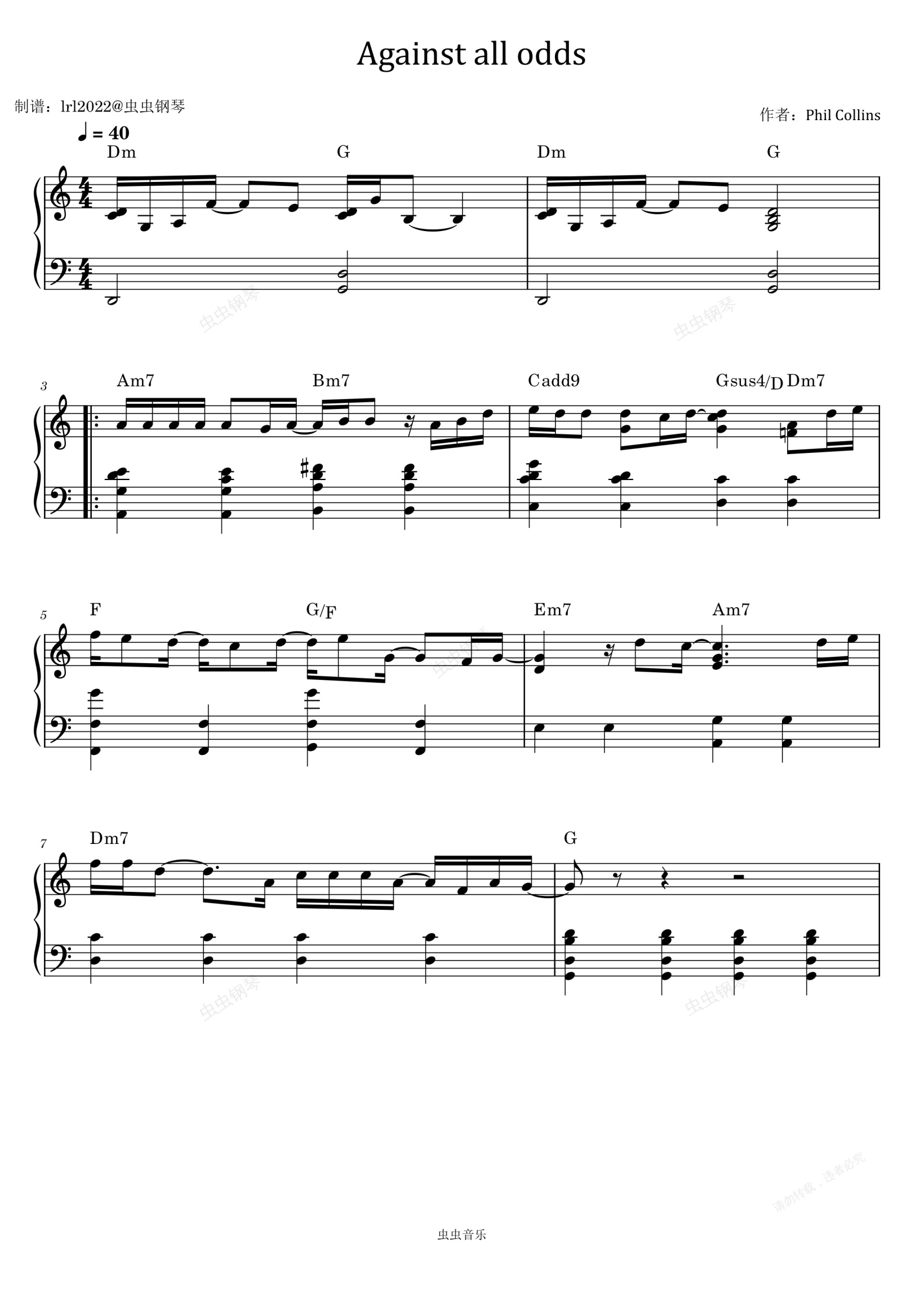 鋼琴譜:Against All Odds (take A Look At Me Now) - 鋼琴獨奏含和弦