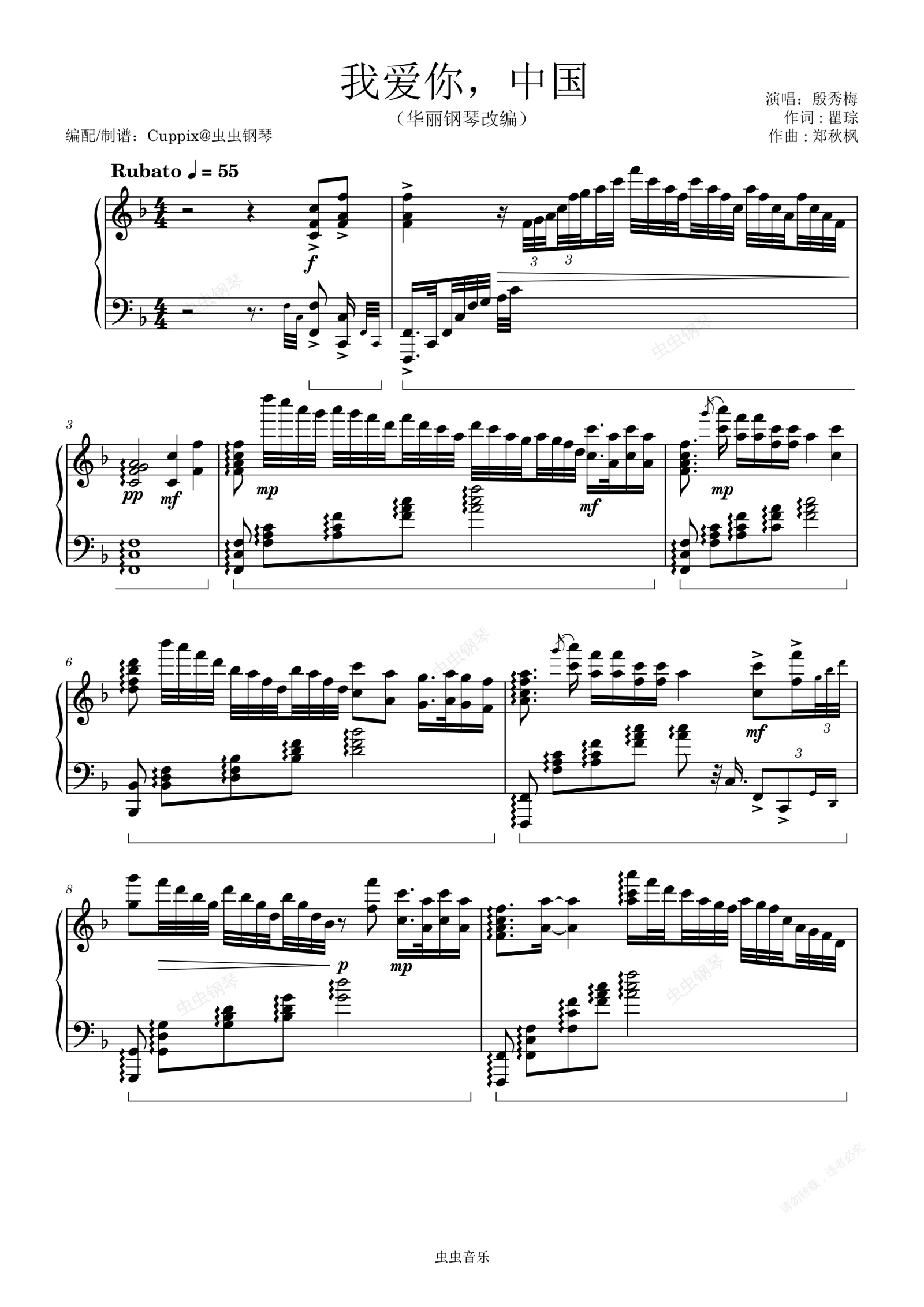 鋼琴譜:《我愛你,中國》超華麗鋼琴獨奏-Cuppix改編