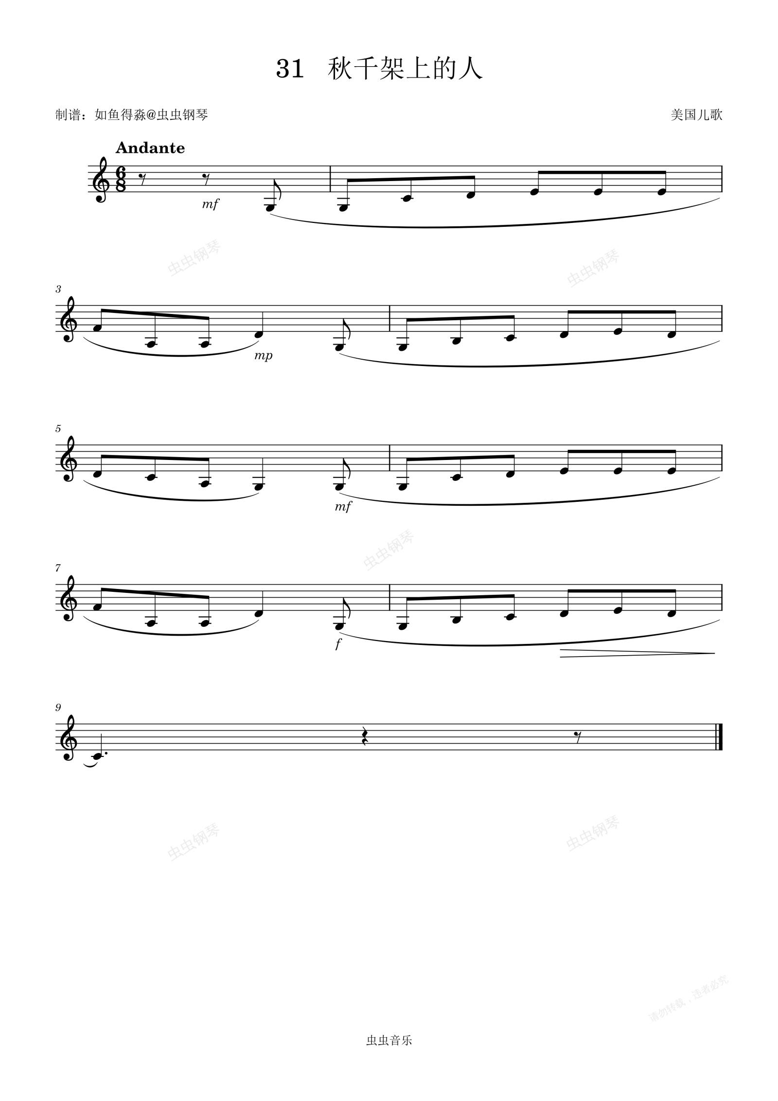 《視唱練耳考試曲31 秋千架上的人》是 ZYY 音基演唱的一首歌曲,由 ZYY 作詞作曲,本曲為C調(附和弦)適合所有同學演奏和學習