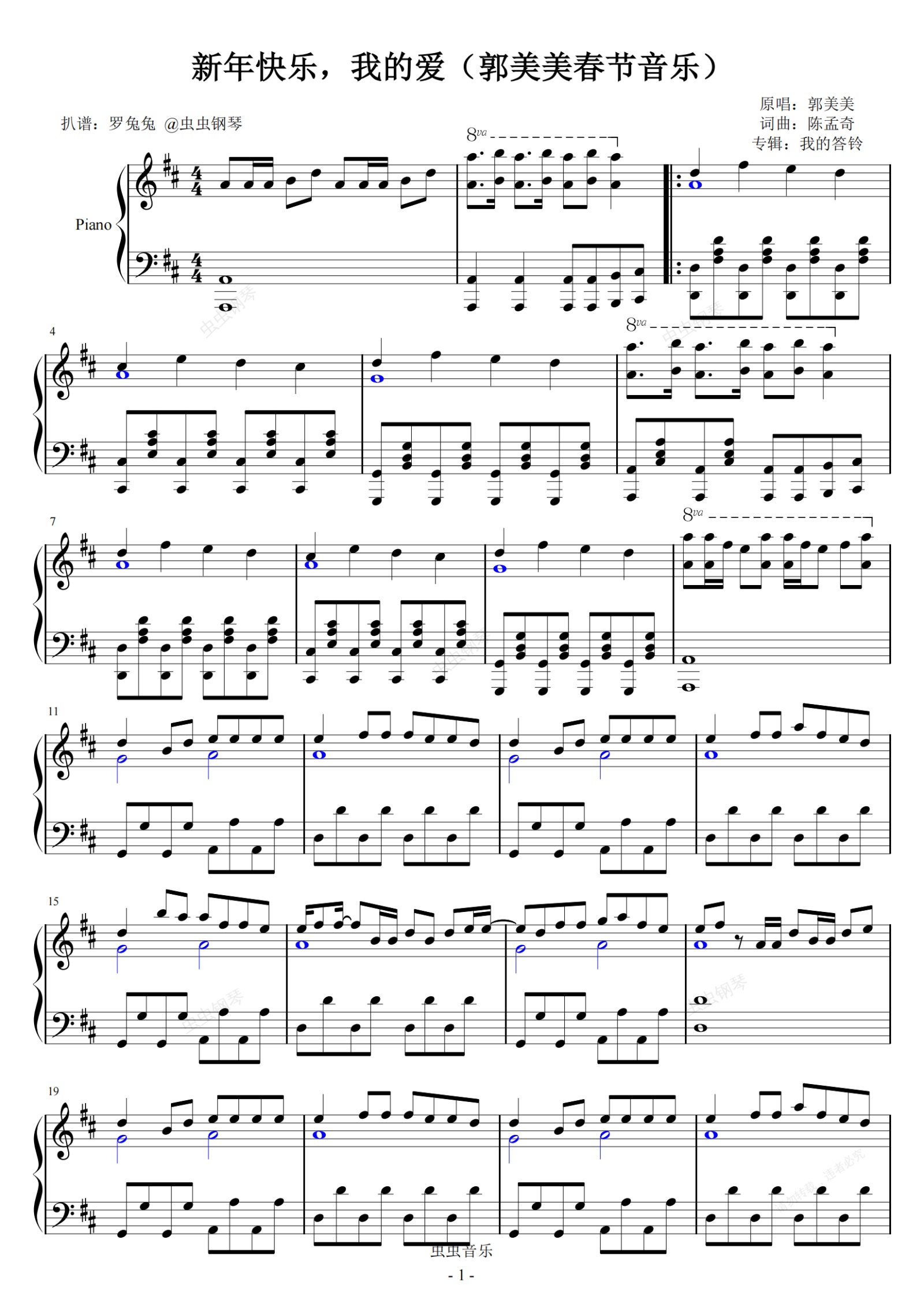 鋼琴譜:新年快樂,我的愛(郭美美春節音樂)
