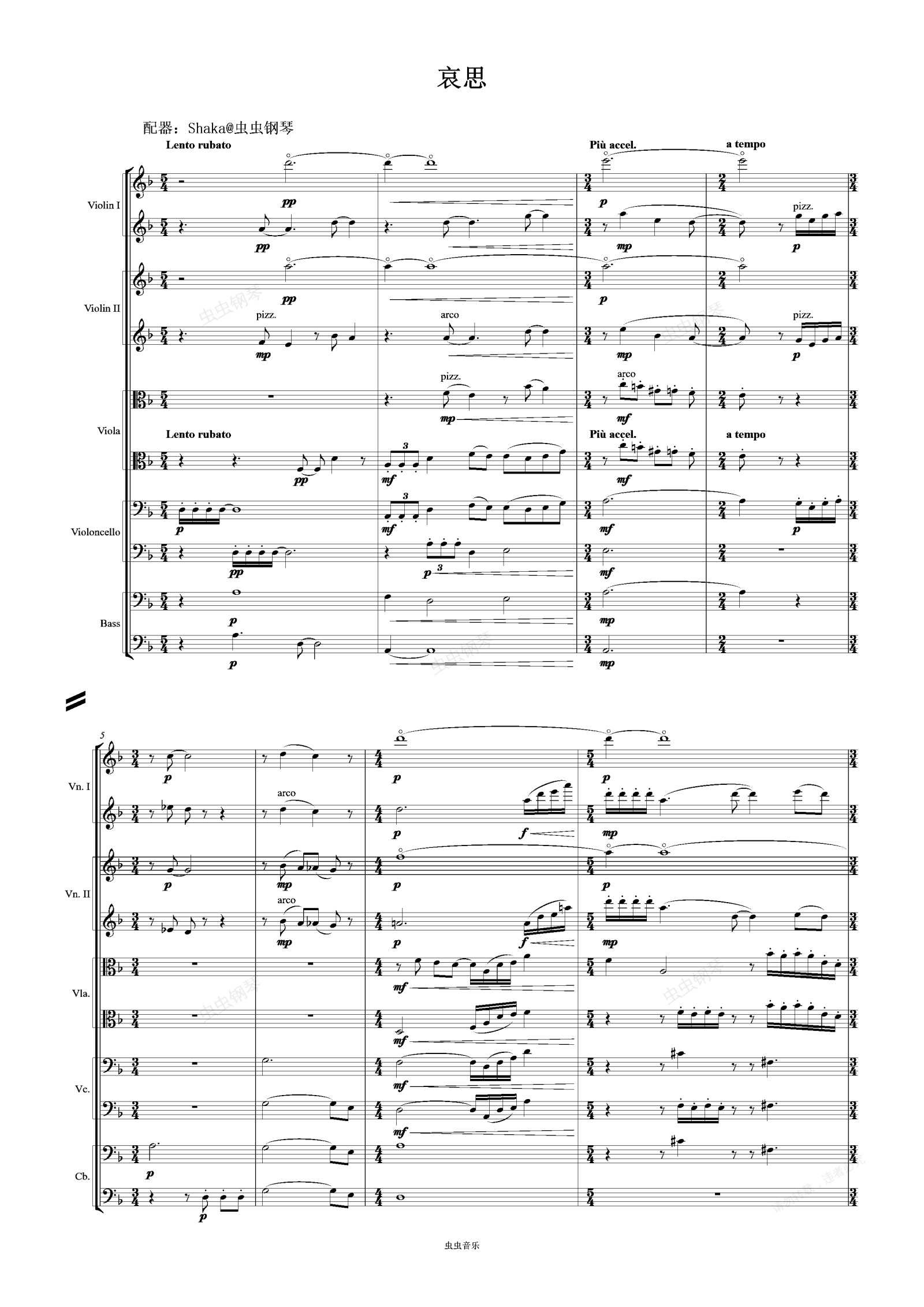 鋼琴譜:哀思 (原創(chuàng)雙弦樂隊(duì)配器)