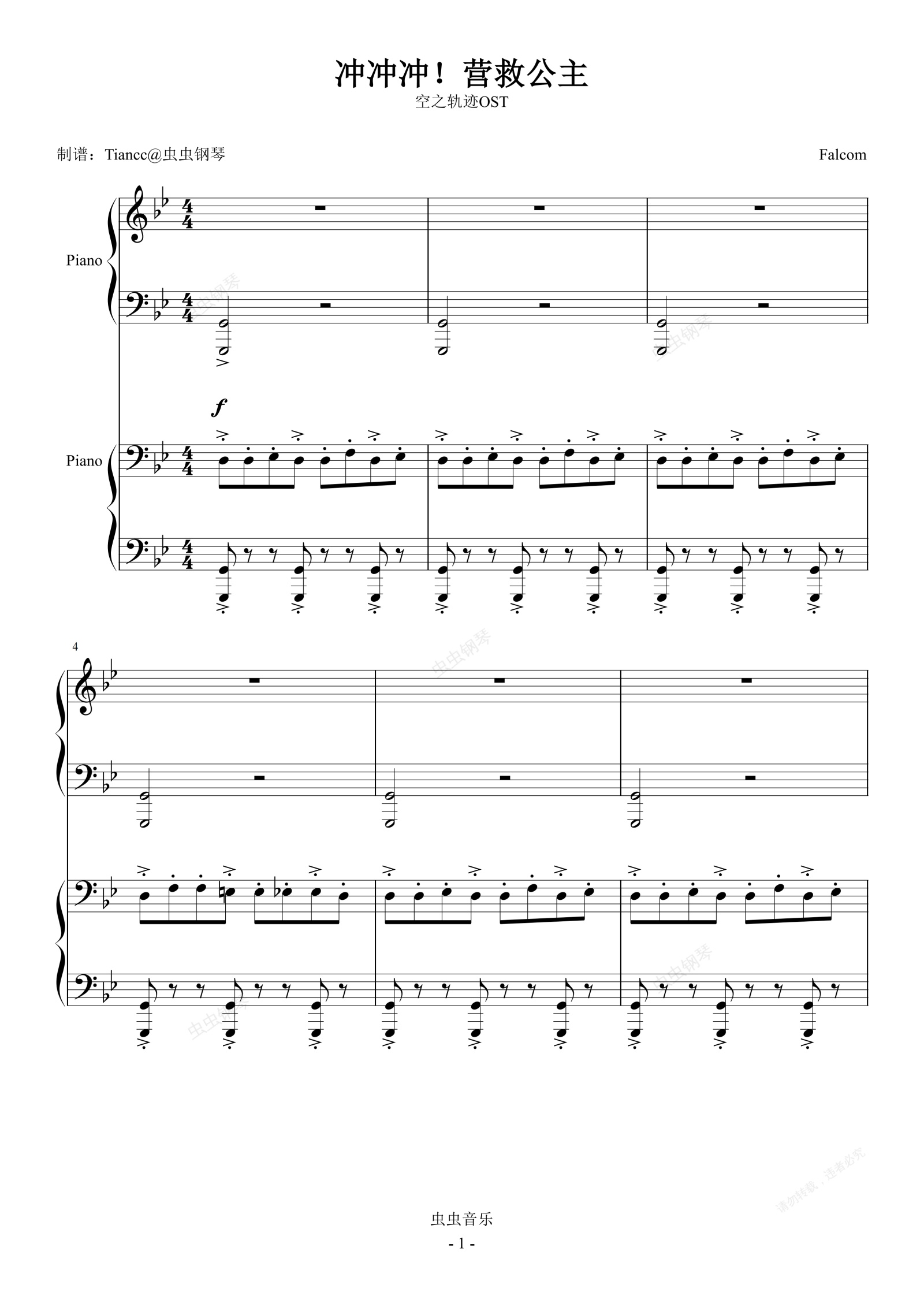 鋼琴譜:《沖沖沖!》空之軌跡,營救公主~