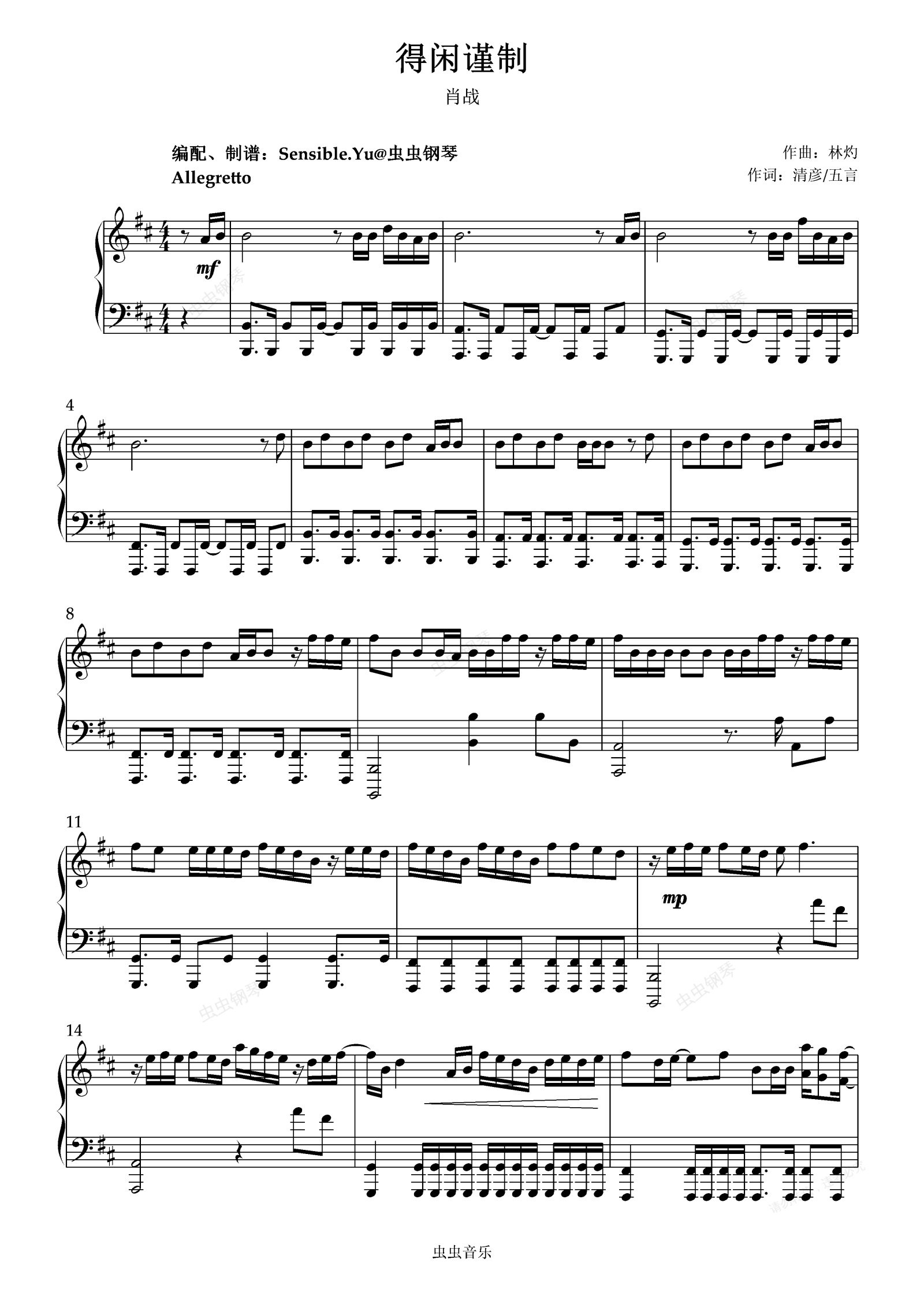 鋼琴譜:《得閑謹制》——肖戰(改編:Sensible.Yu)