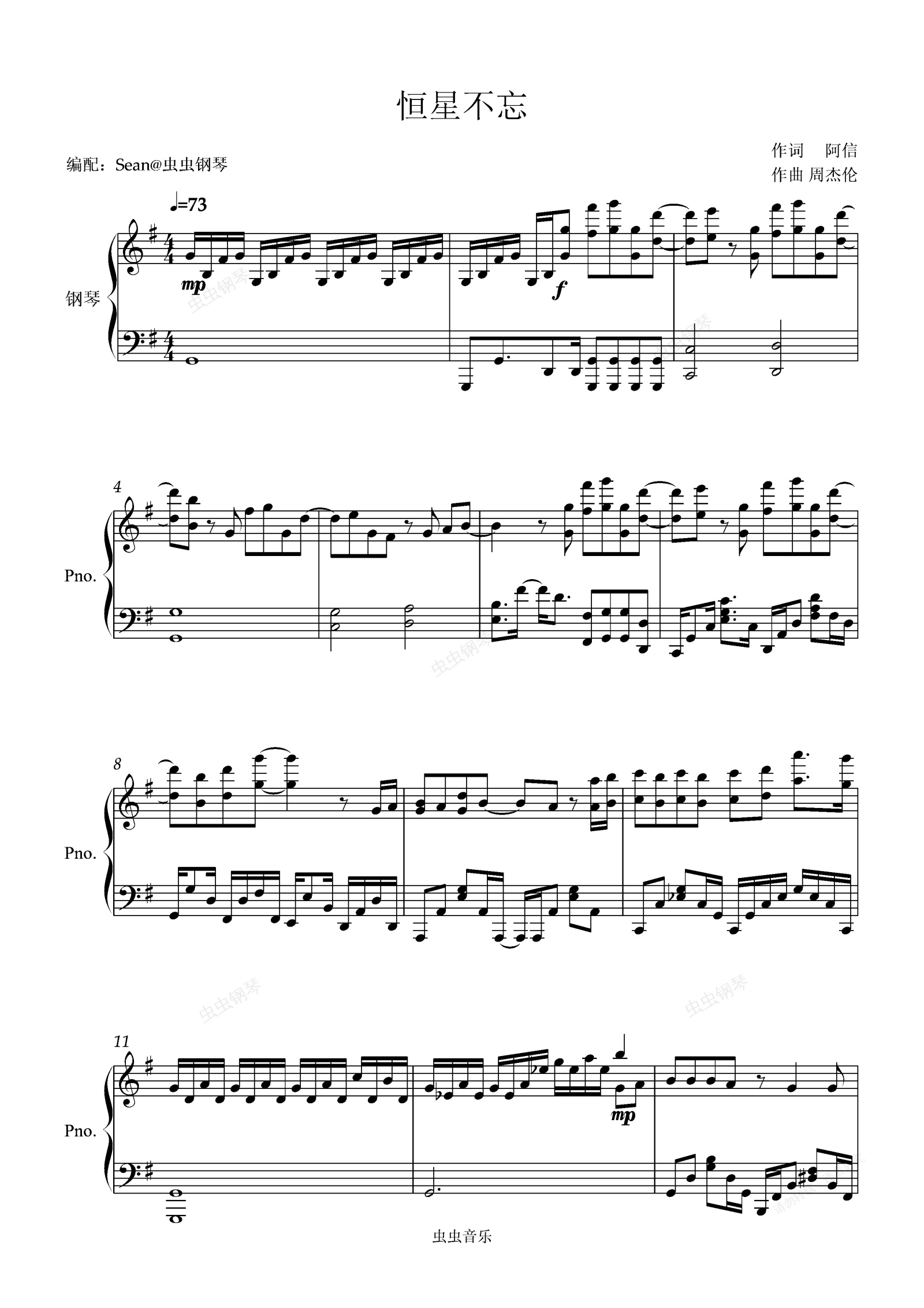 鋼琴譜:《恒星不忘》極限還原版-Sean編配
