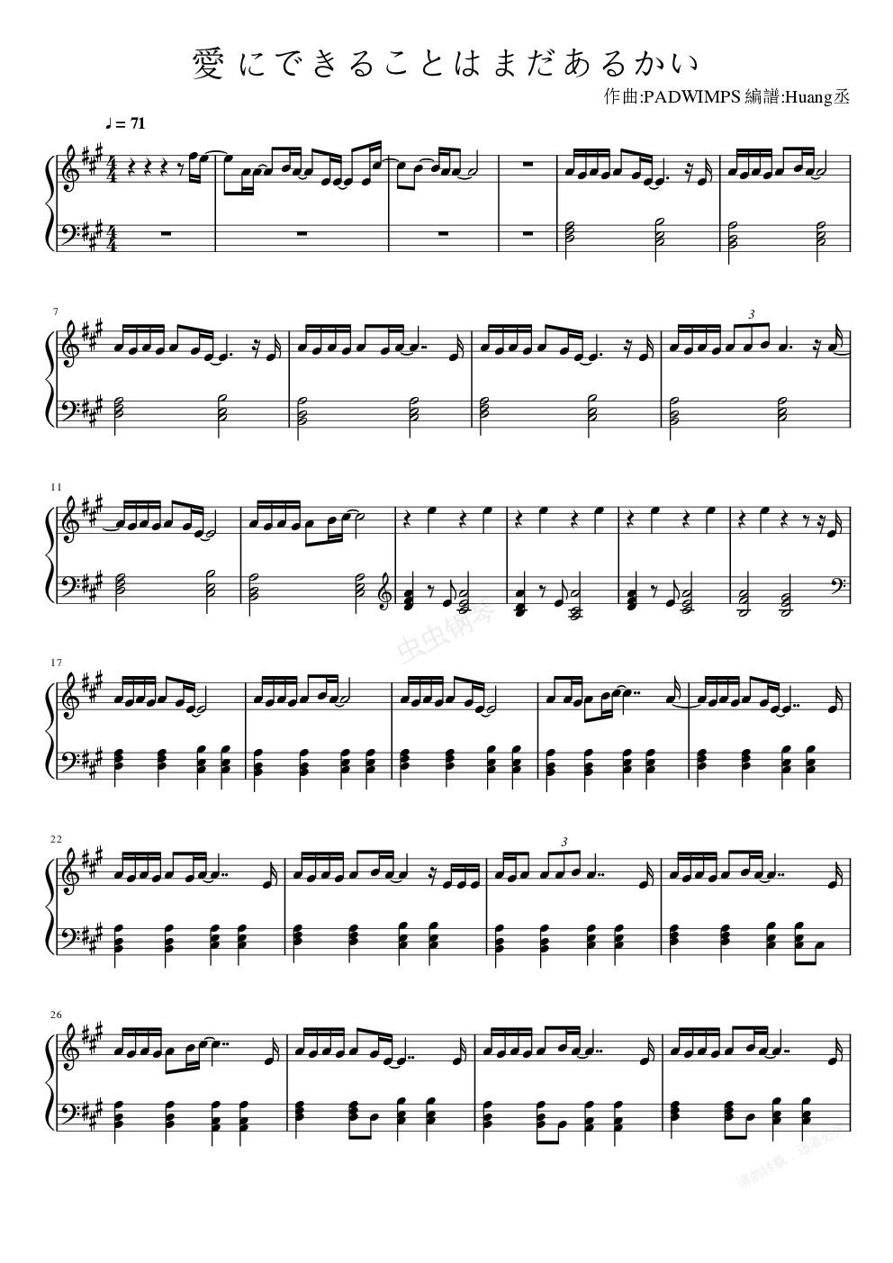鋼琴譜:RADWIMPS-愛 にできることはまだあるかい 天氣之子