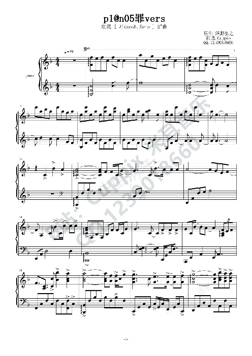 個人最愛的鋼琴曲之一,每次聽都是一身雞皮疙瘩。這次帶來的重制版幾乎100%還原,導致你們可能誤把試聽音頻當成原曲。這首其實在N年之前就扒過了,當時還是個小白,譜子做的也不堪入目,現在回頭重置居然發現這么簡單的曲子能扒錯這么多音。。。B站米耳音樂,大家可以關注一下,有新作會第一時間在B站更新。低價接扒譜制譜,Q.