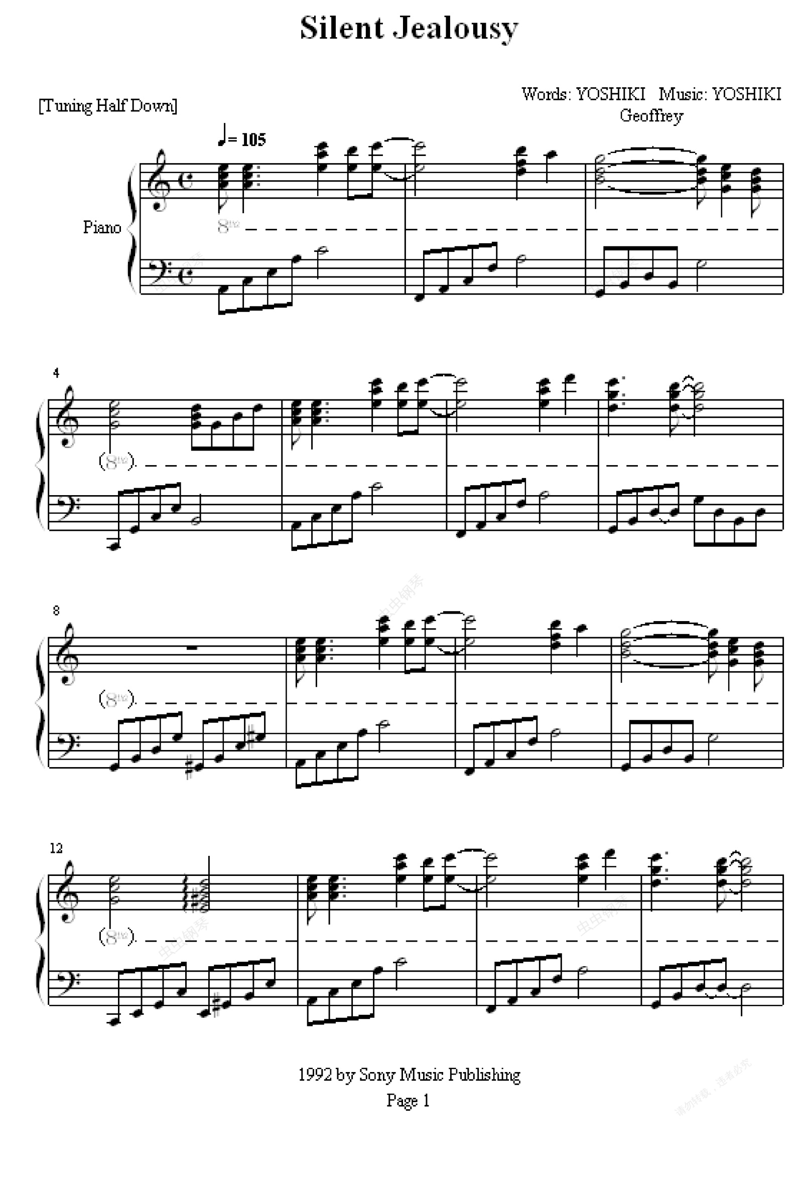 鋼琴譜:Silent Jealousy -(前奏)