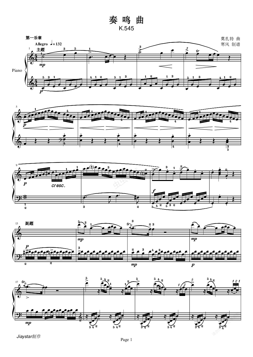 鋼琴譜:莫扎特C大調(diào)第十六鋼琴奏鳴曲K.545