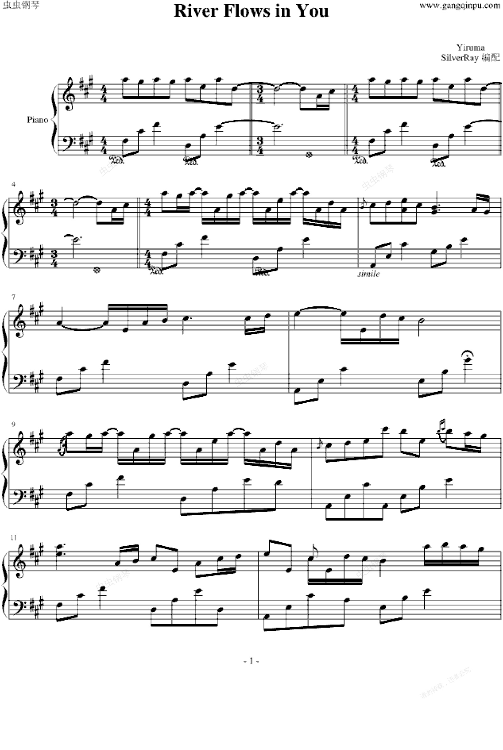 鋼琴譜:River Flows In You