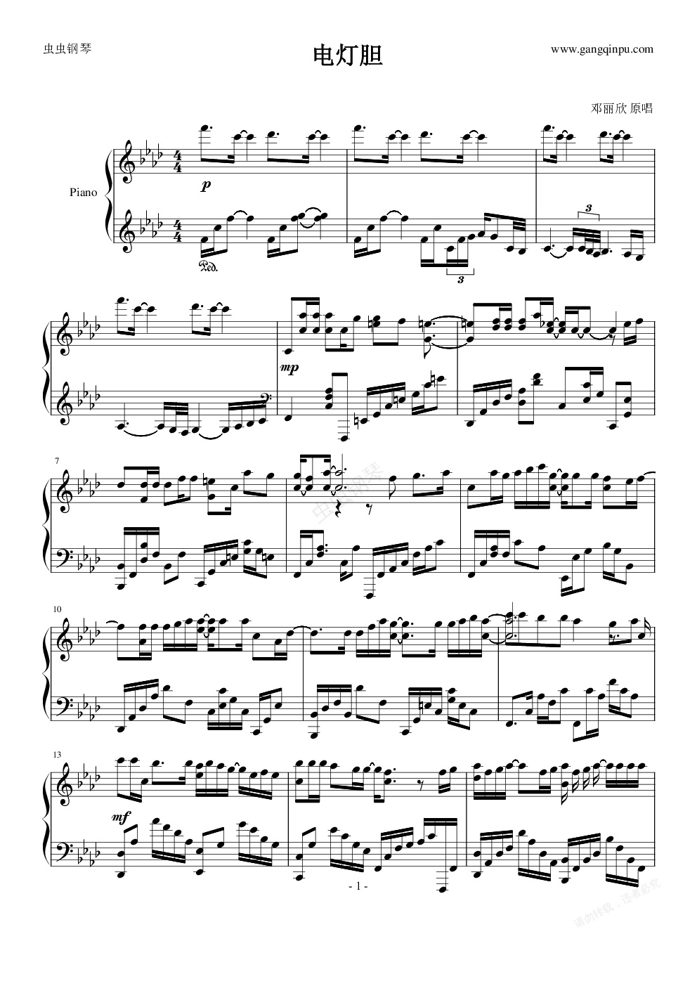 鄧麗欣狠出名的歌 好正! 不過是粵語 原譜來自香港流行鋼琴協會 但我有所修改  另外另外 有興趣聽真人唱的可以到 /music/424/?wma  不過是泳兒唱的.. =_=|| 因為覺得鄧麗欣本人沒泳兒唱得好聽 T_T 在多口一句 最后面的 有誰可以彈出來額? @_@