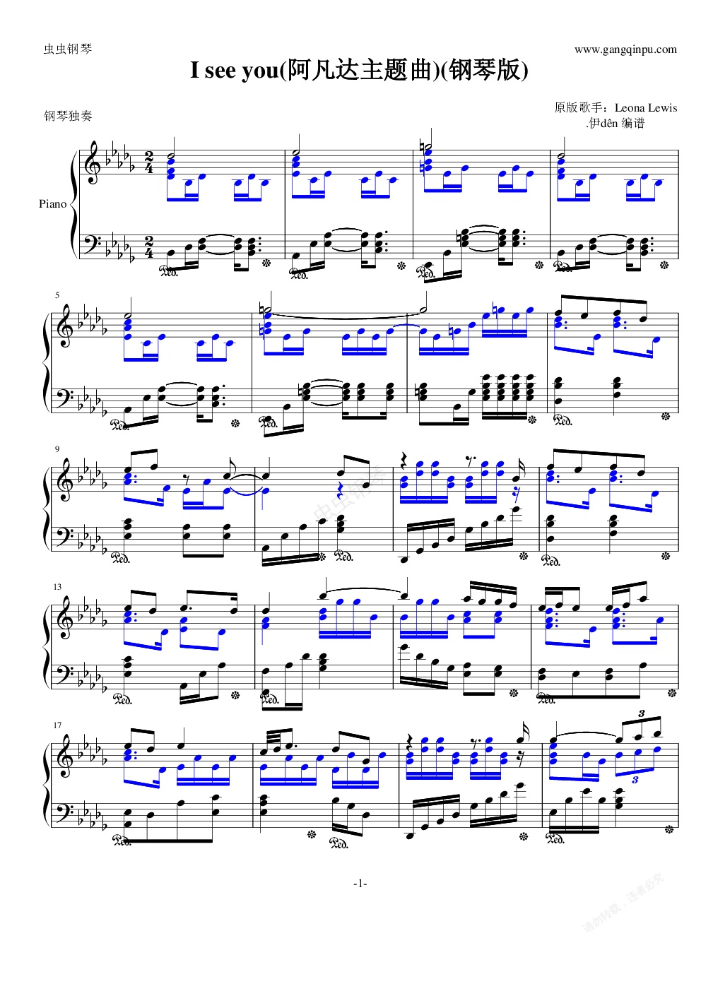 鋼琴譜:I see you(阿凡達主題曲)(鋼琴版)