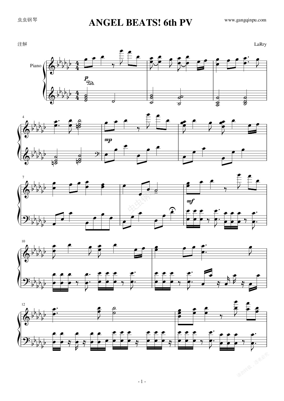 鋼琴譜:Angel beats PV6 Theme of SSS