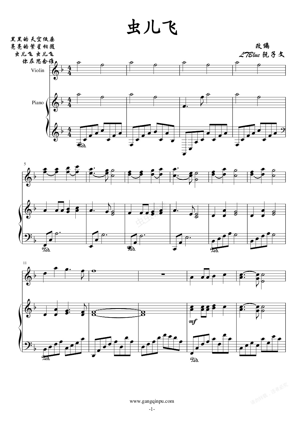 鋼琴譜:蟲兒飛