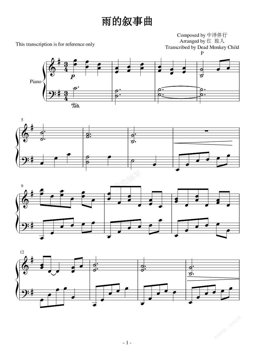 此譜為流行鋼琴網上名為的作者制作的曲譜(/?tid=)具體請參照這里,現上傳的譜里我稍微修改了一些地方。