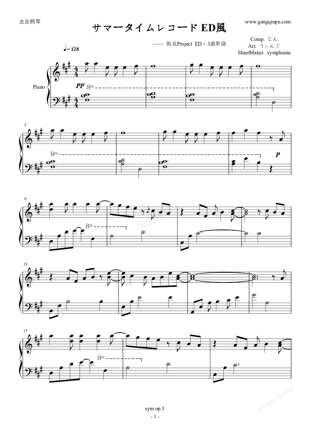 鋼琴譜:【陽炎ed】サマータイムレコード ED風 / うぃんぐ