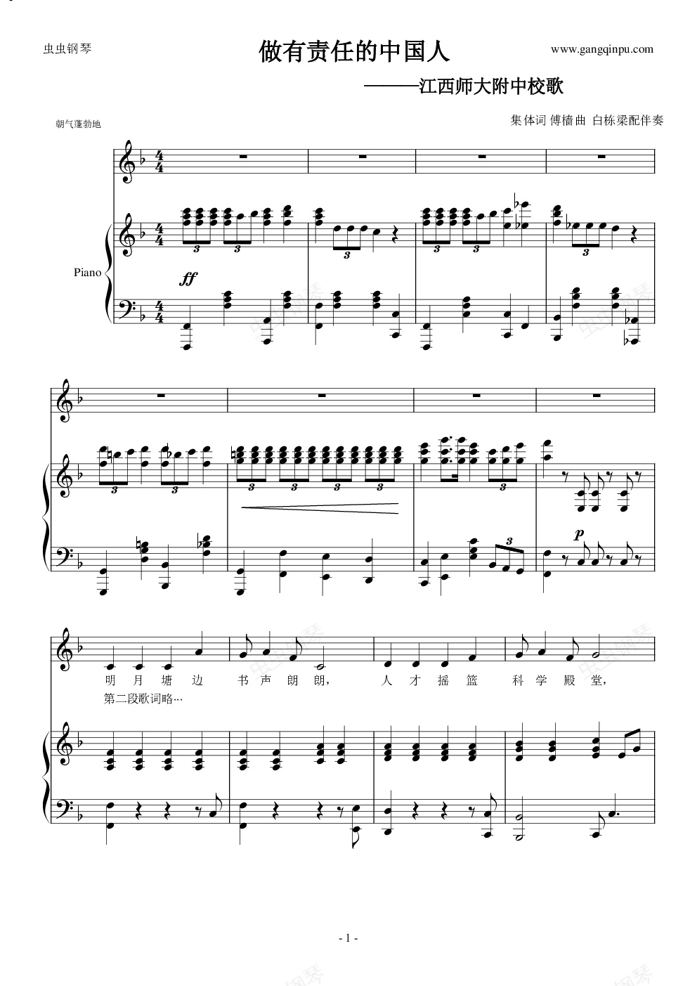 鋼琴譜:做有責任的中國人——江西師大附中校歌鋼琴伴奏譜