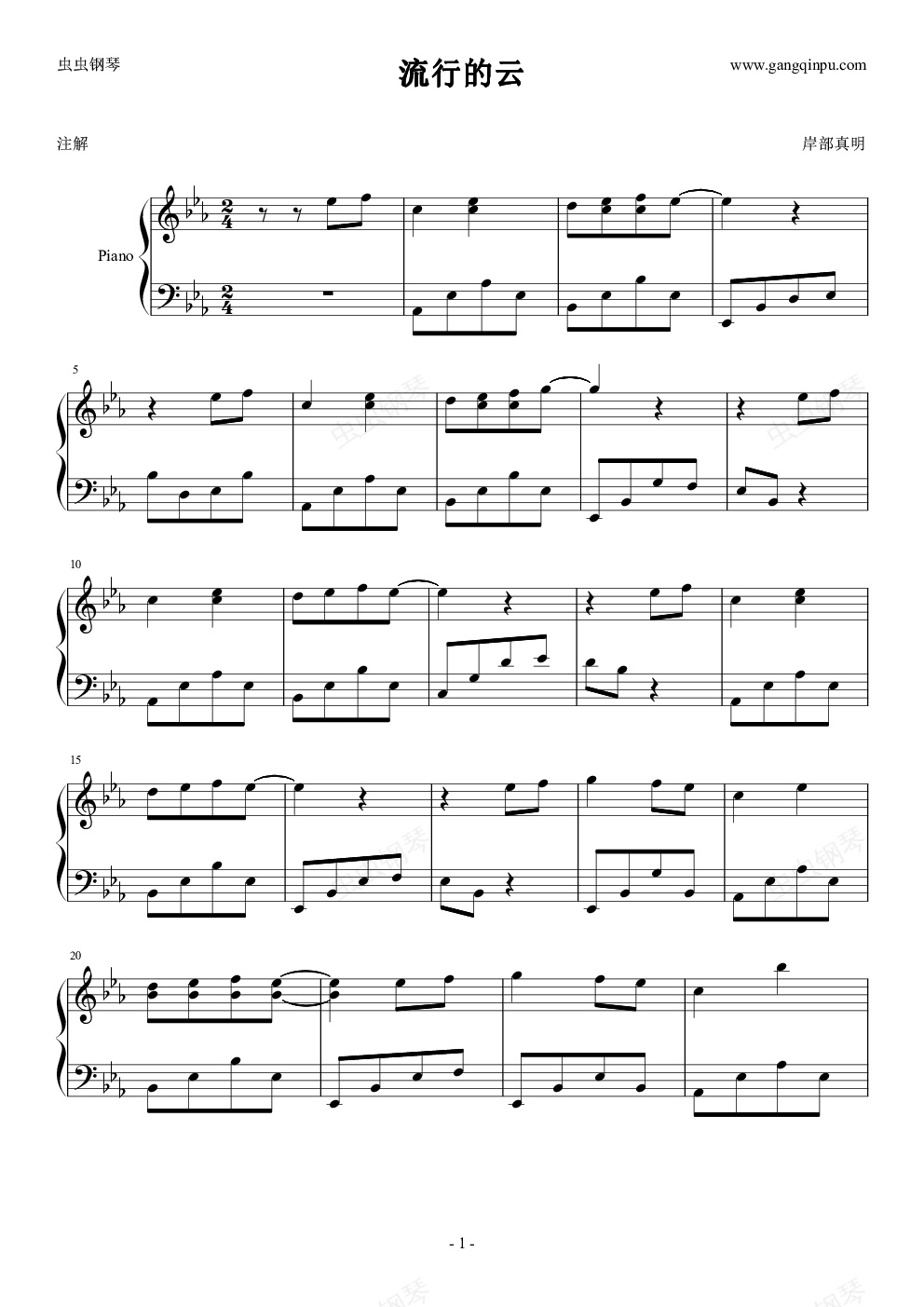 岸部真明的 流れ行く雲(yún),第一次打譜有點偷懶了...后面重復(fù)的部分就省略了。超簡單的。
