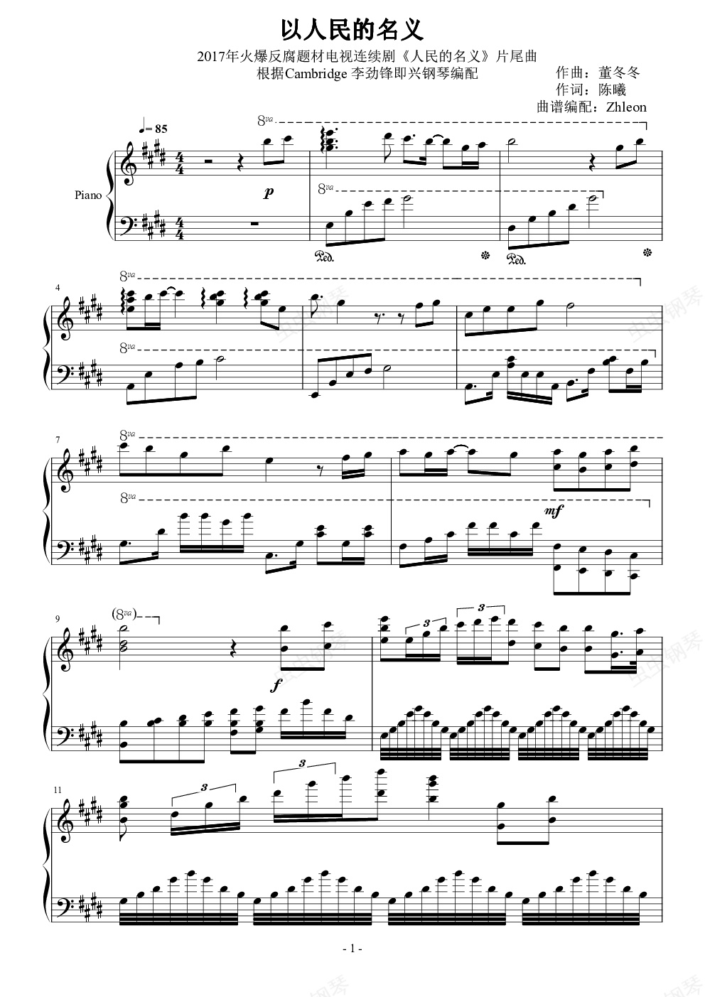 《人民的名義》火爆熱播中,片尾曲《以人民的名義》鋼琴版火爆發布,希望大家喜歡! 本譜根據 李勁鋒即興鋼琴編配制作。 [IMG]/pu/2017/4/23/__1034__[/IMG]