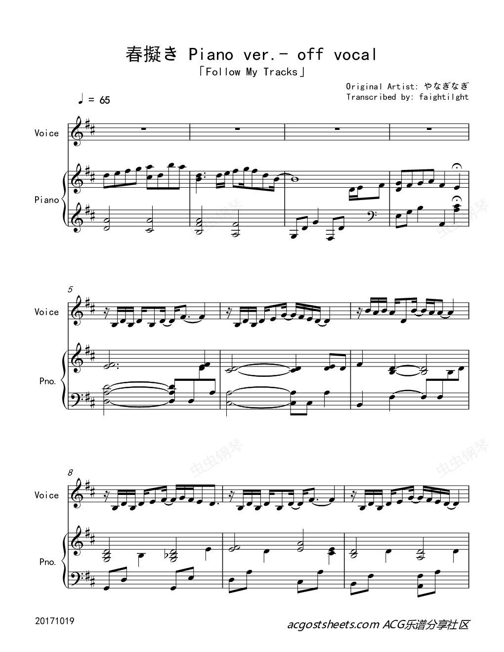 制譜。完成于2017年10月19日。本曲收錄于やなぎなぎ的專輯《 My》,是一首鋼琴伴奏的曲子。同時,原曲是動畫《我的青春戀愛物語果然有問題。續》的OP片頭曲。