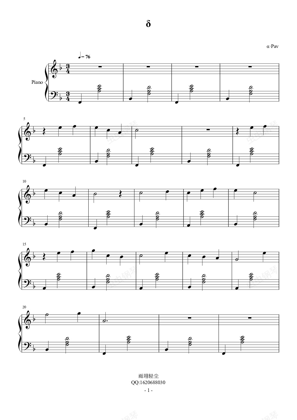 作者:α·Pav專輯 ~ Piano II ~第一首。-------------------------------------扒譜:雨翊輕塵