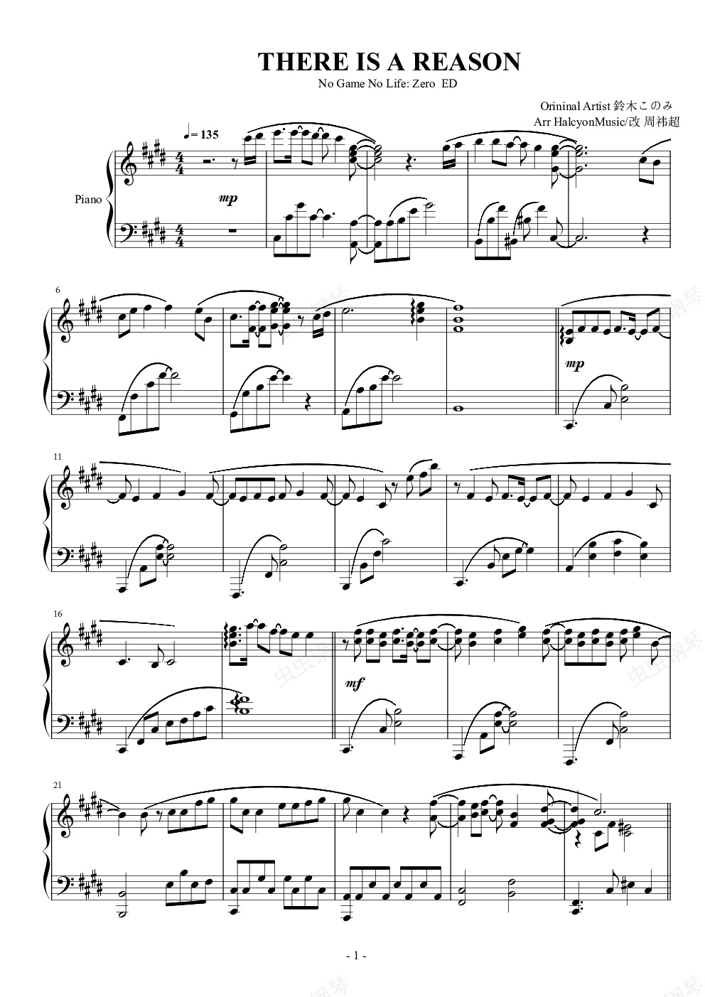 鋼琴譜:There is a reason[No Game No Life: Zero ED ]