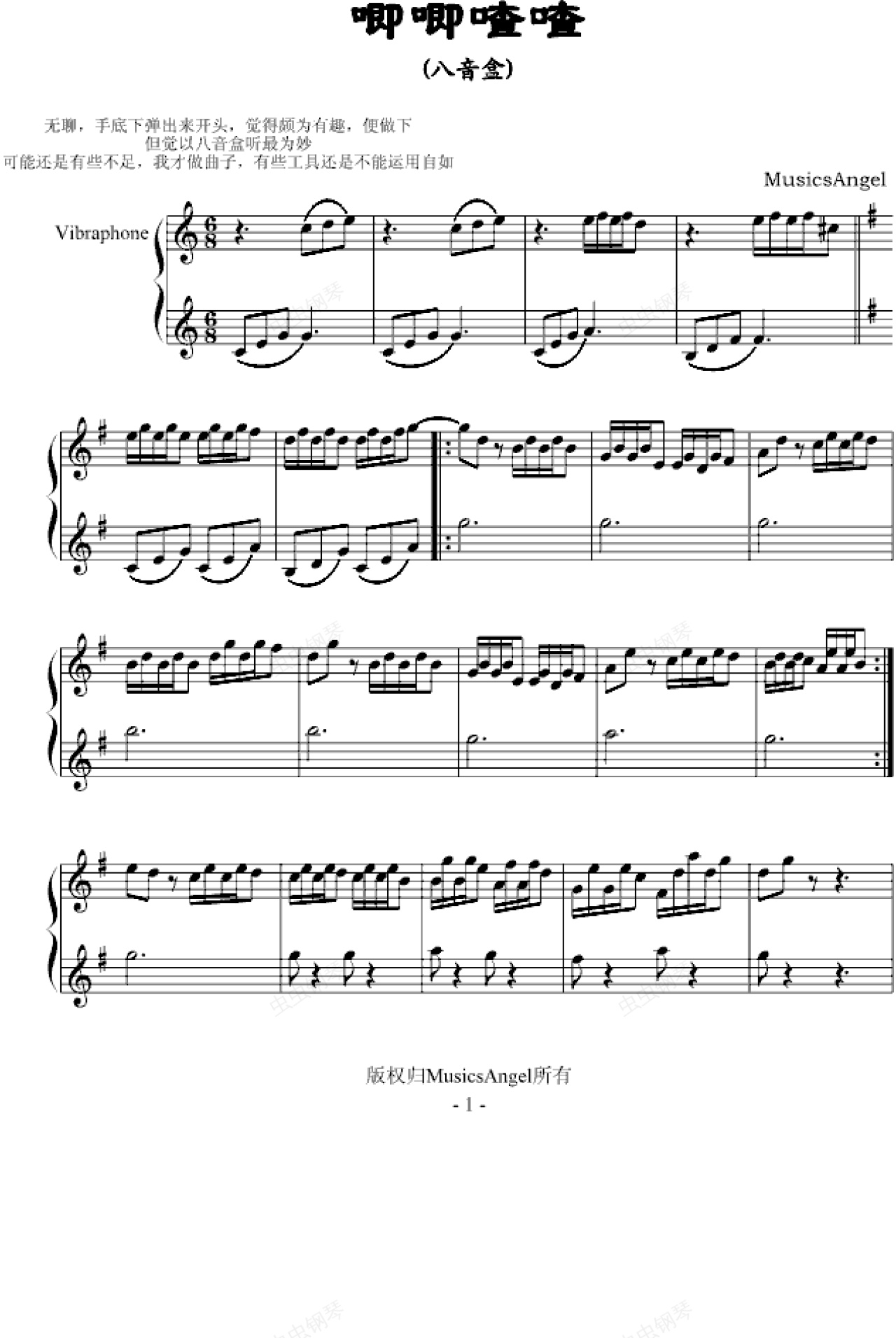 鋼琴譜:唧唧喳喳-八音盒(小音樂)
