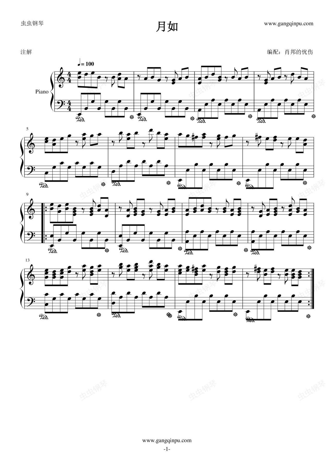 鋼琴譜:仙一回憶月如的音樂