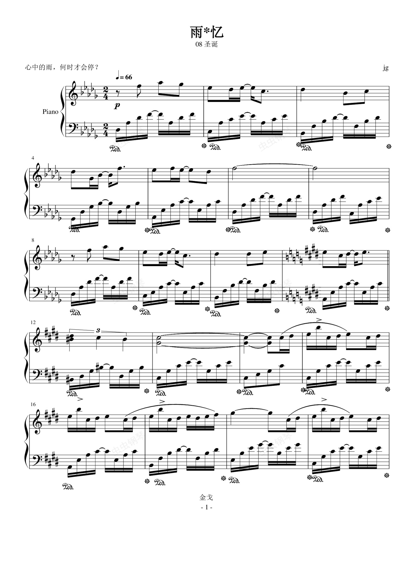 鋼琴譜:雨憶