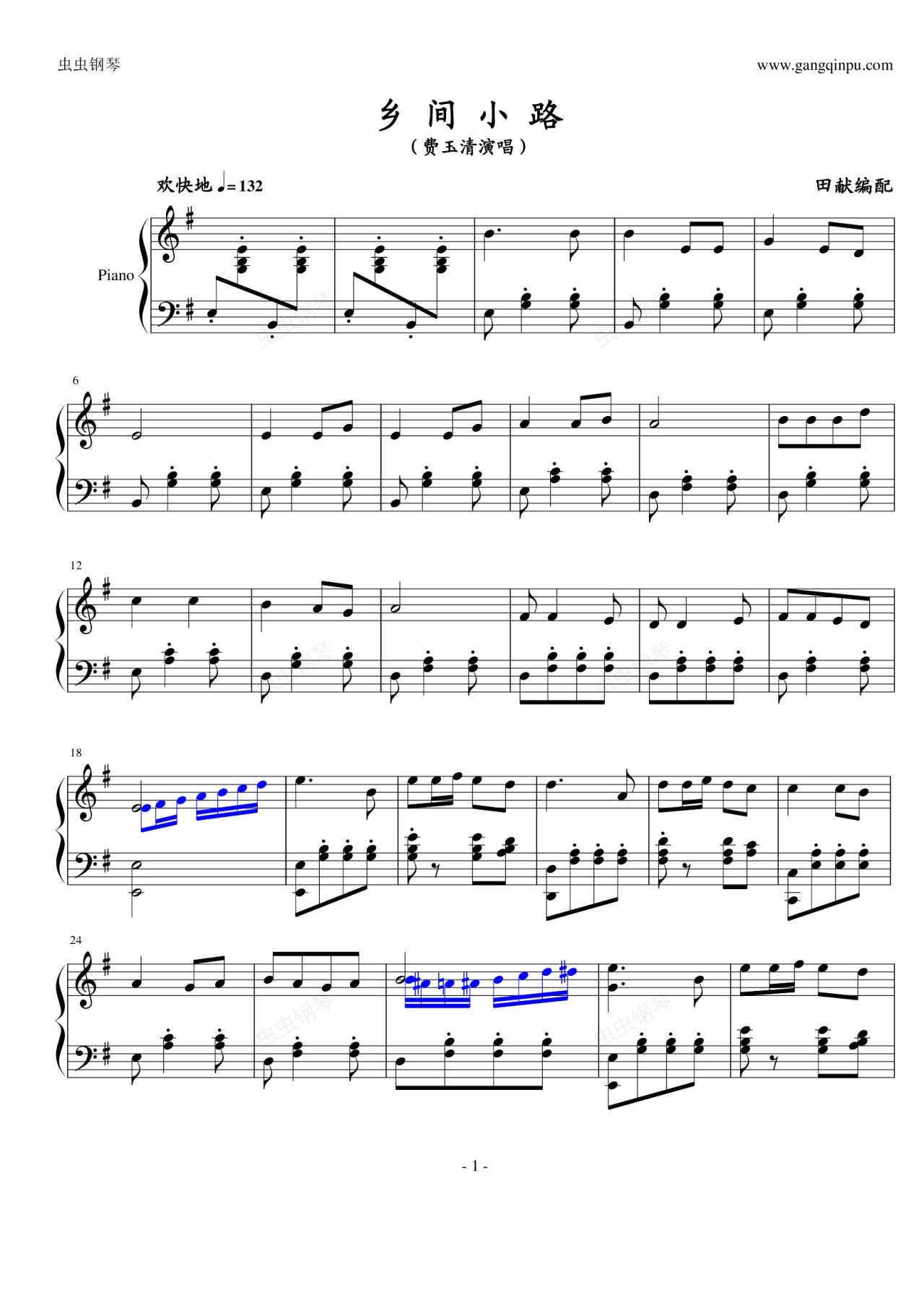 鋼琴譜:鄉間小路