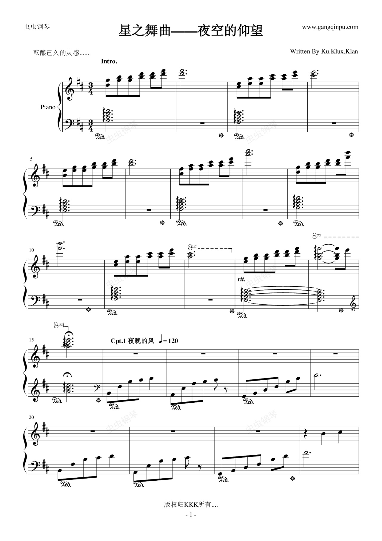 鋼琴譜:星之舞曲——夜空的仰望