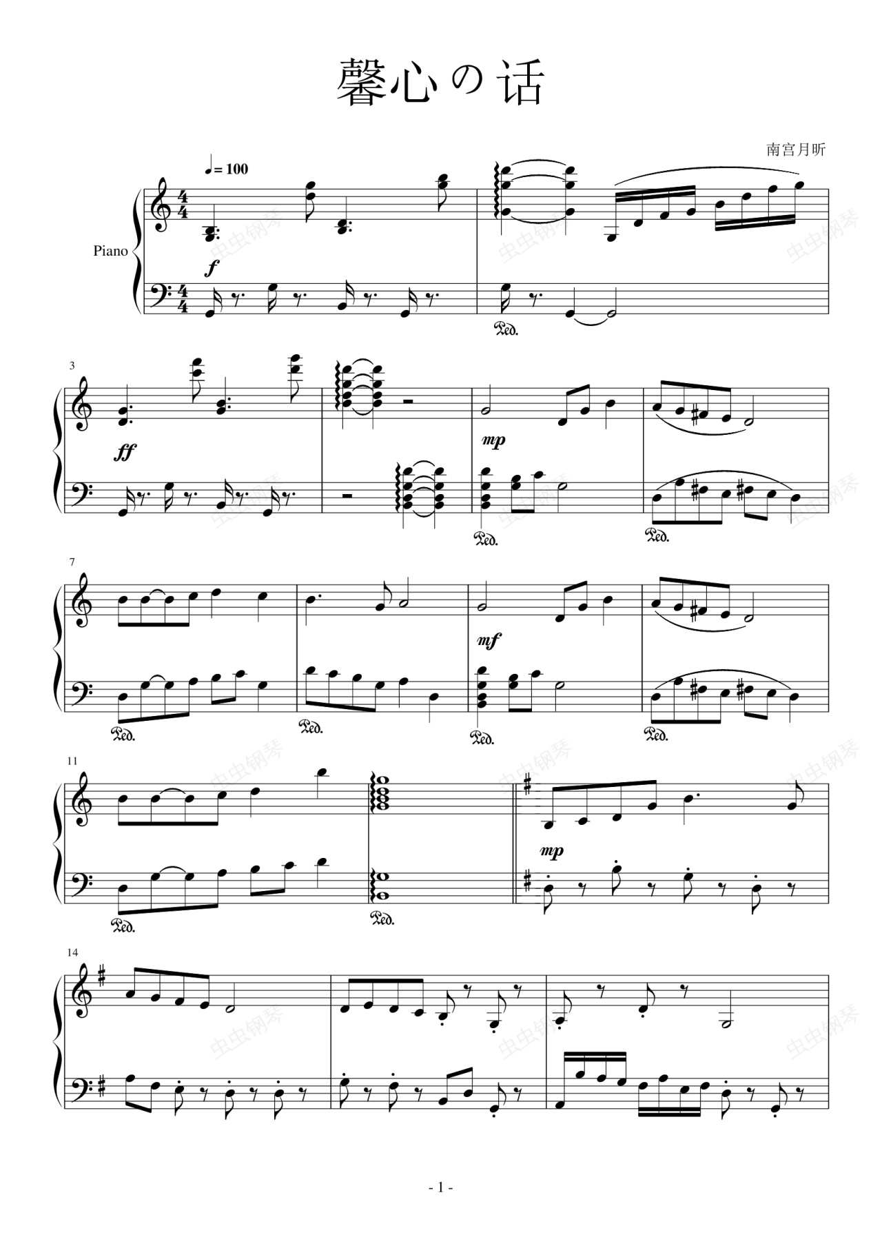 輕輕的,你走了。 輕輕的,你去了。 把我留在這里。 你說你用 最溫馨的話語; 最動人的語言; 最美麗的言行; 來—— 感動。 歡快的旋律帶給了我們快樂, 我想和你在這 G大調的旋律里; C大調的華爾茲; 靜靜的度過…………