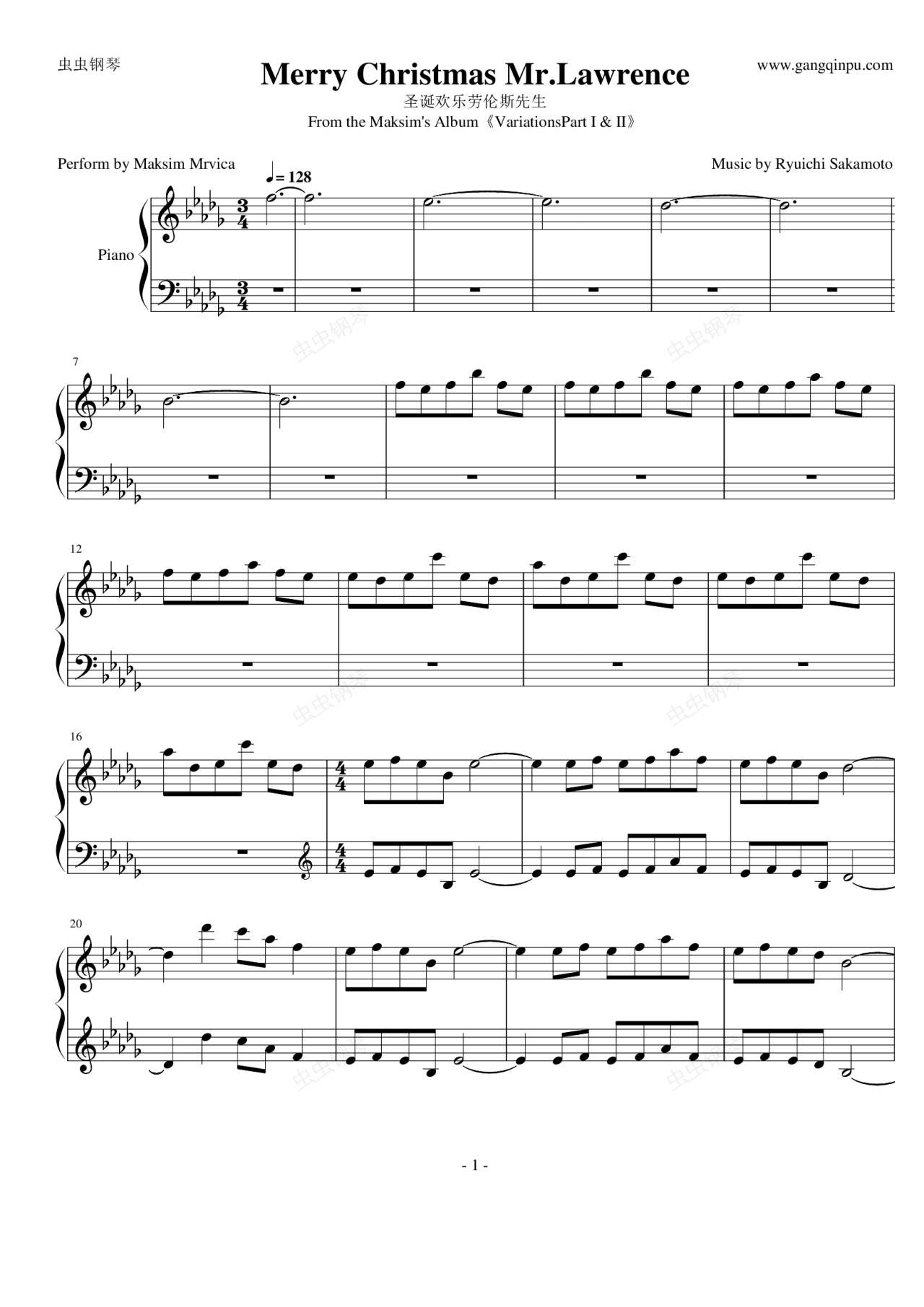 馬克西姆圣誕快樂勞倫斯先生,自己扒的譜,大家慢慢練吧。