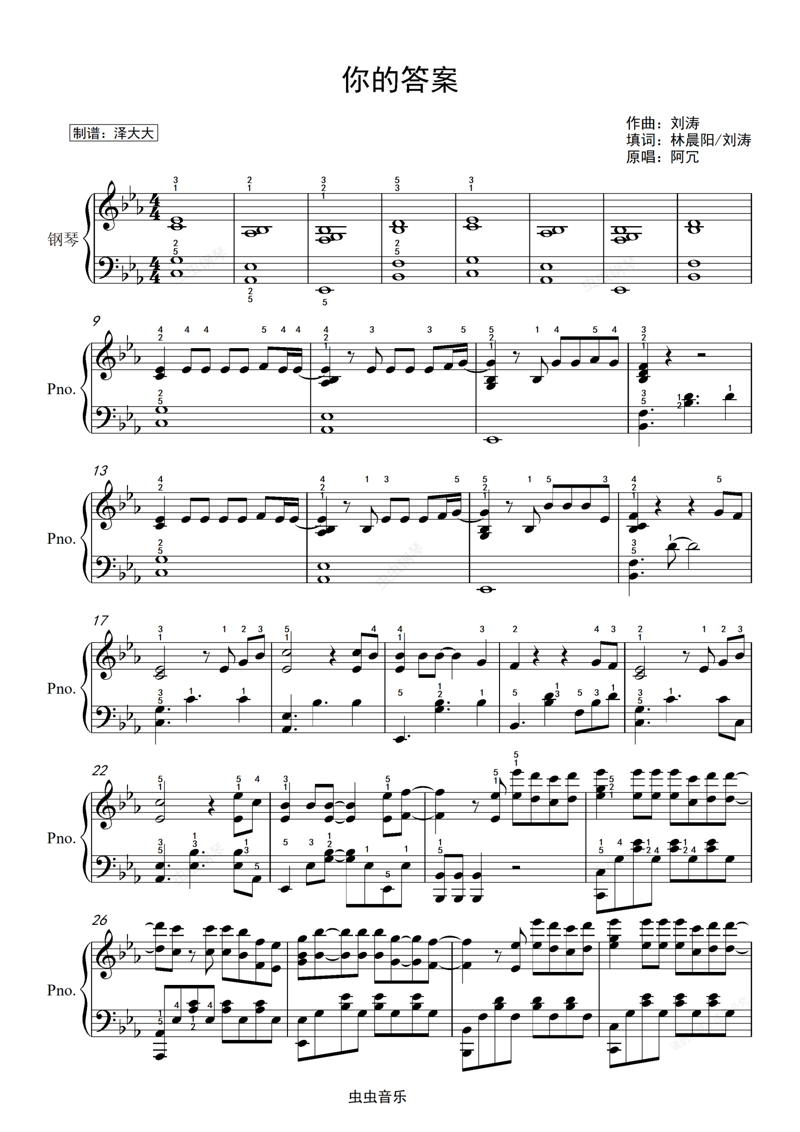 鋼琴譜:你的答案(鋼琴獨(dú)奏版)