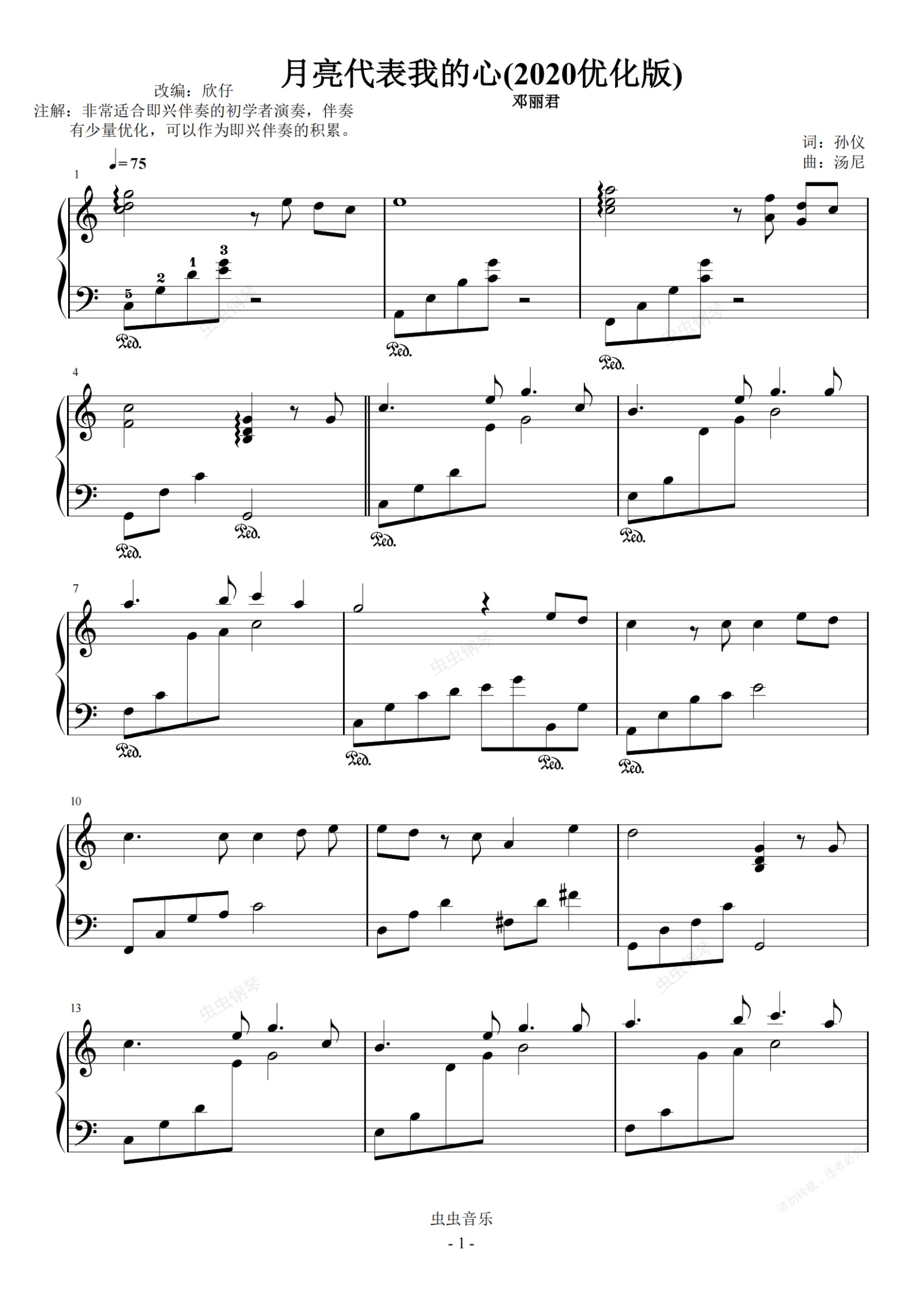 鋼琴譜:月亮代表我的心(2020優(yōu)化版)