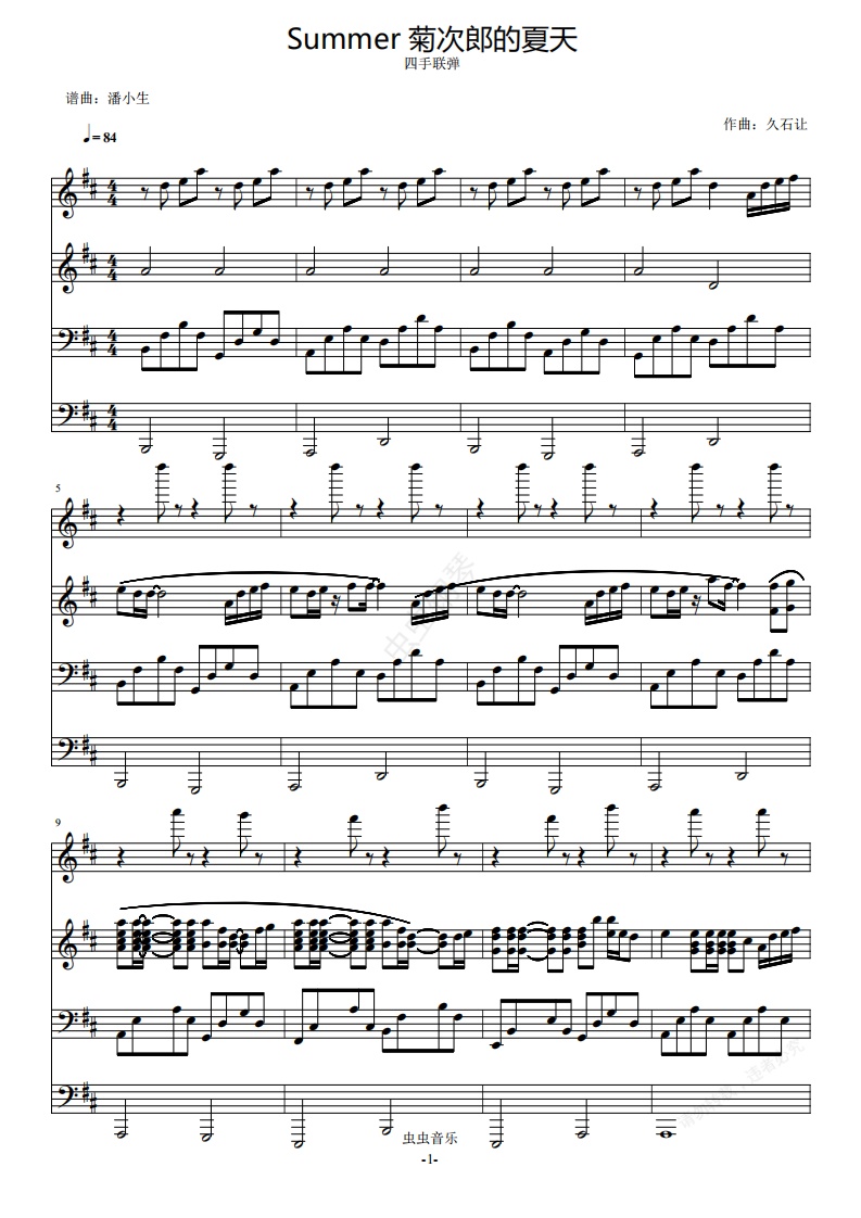 鋼琴譜:summer 四手聯(lián)彈 菊次郎的夏天