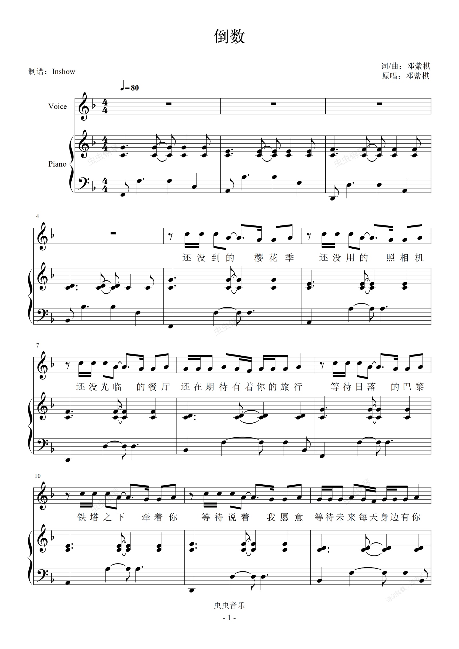 鋼琴譜:G.E.M.鄧紫棋 - 倒數(shù)【彈唱譜】