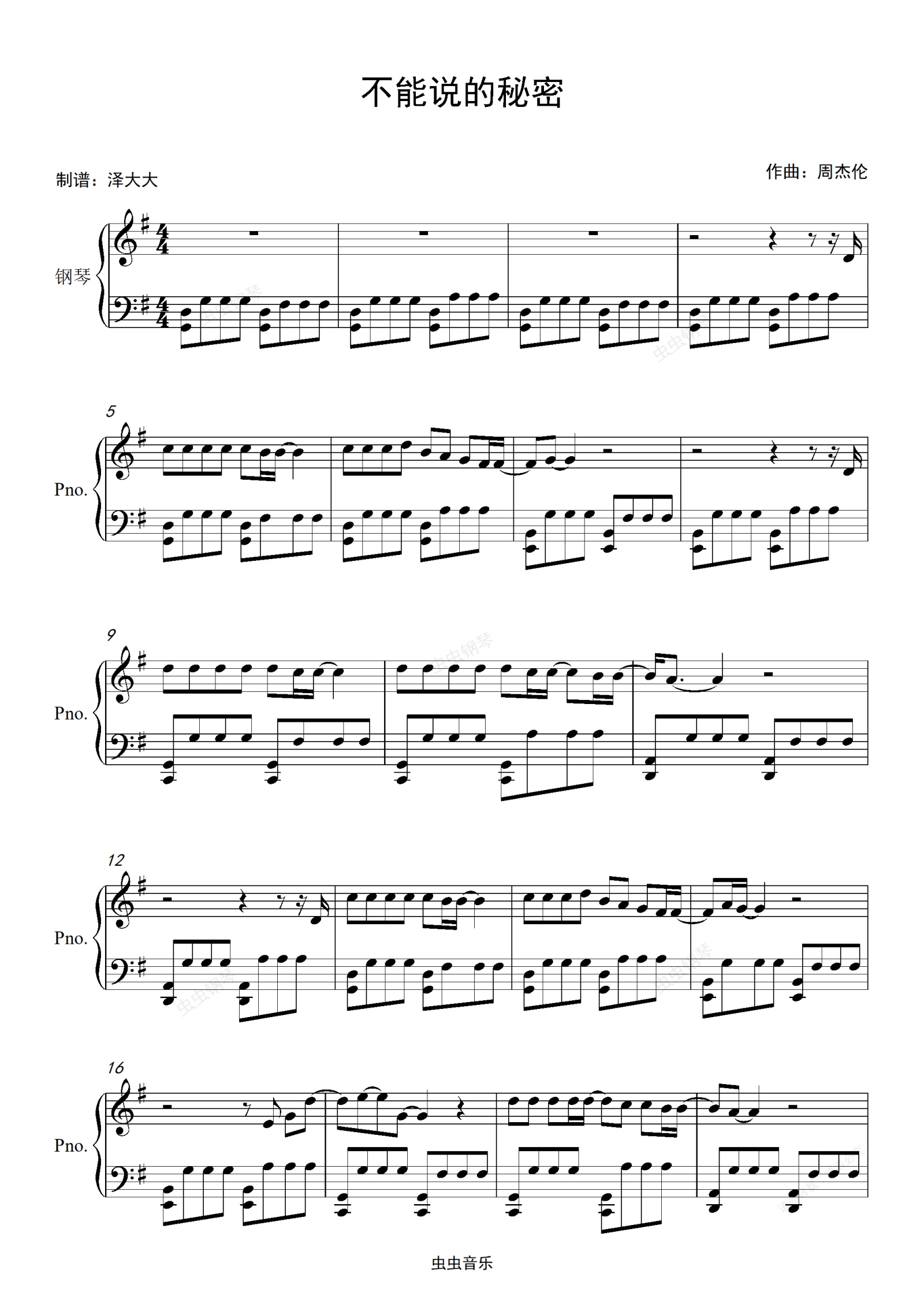 鋼琴譜:《不能說的秘密》【完美獨奏版】