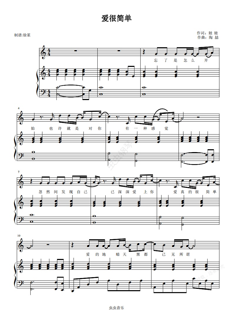 鋼琴譜:陶喆《愛很簡單》鋼琴彈唱