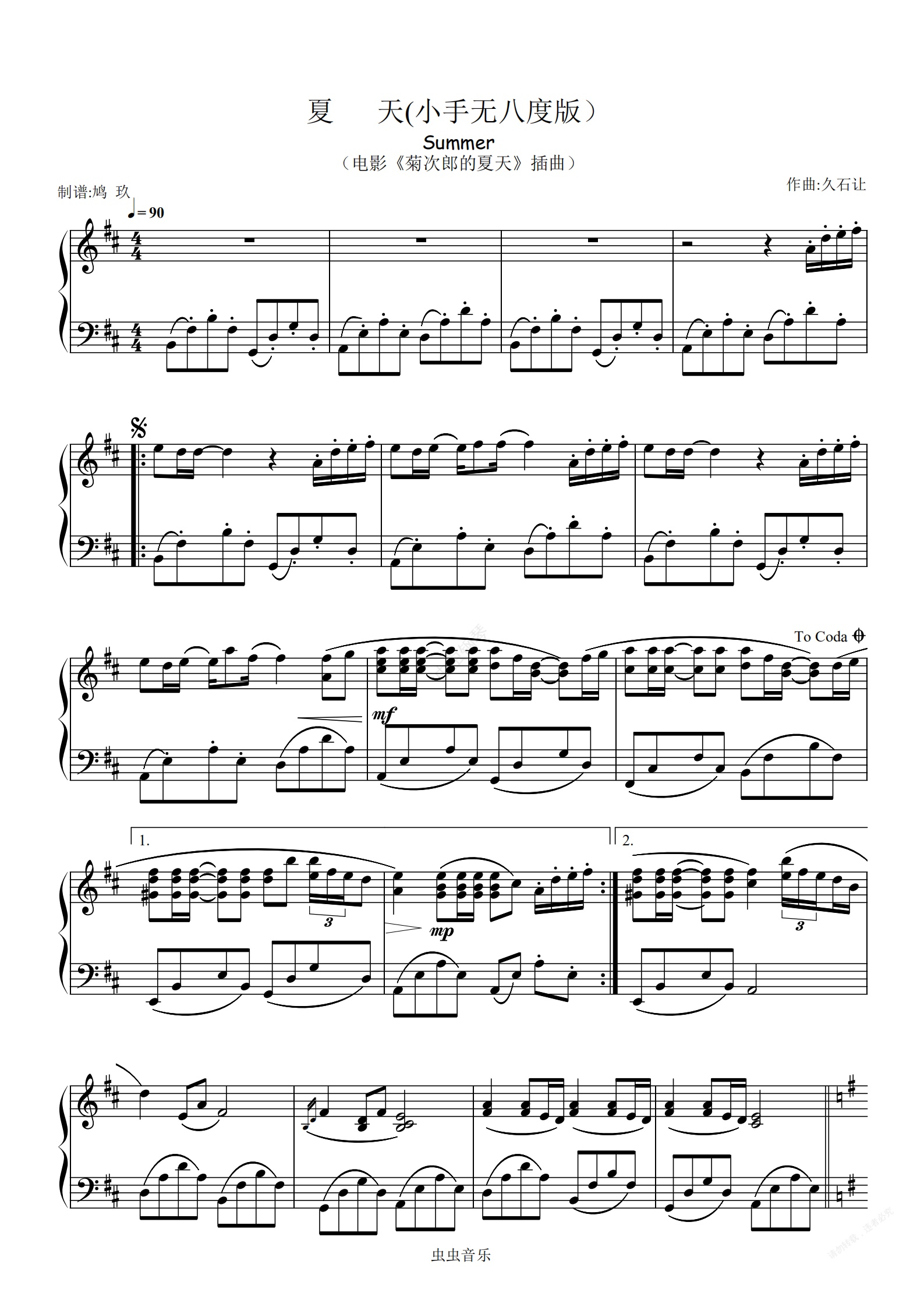 鋼琴譜:(實用演出4、5級)菊次郎的夏天(小手)