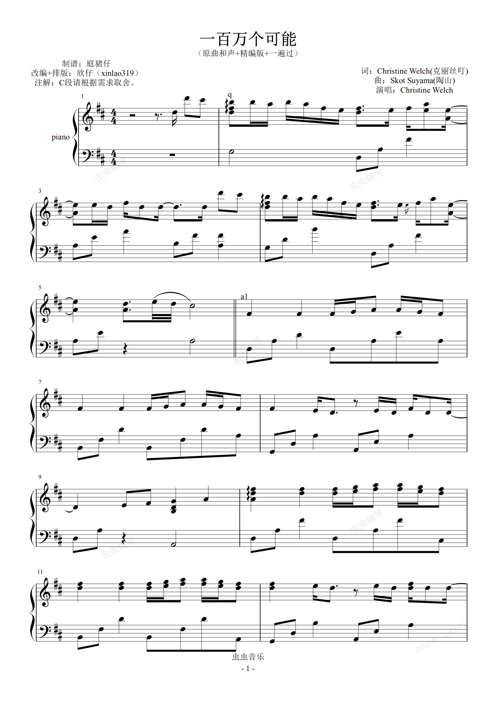 鋼琴譜:一百萬個可能(原曲和聲+精編+一遍過)